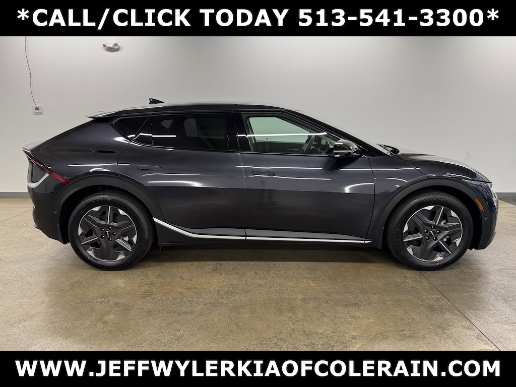 Jeff Wyler Kia of Colerain is very proud to offer this wonderful 2025 Kia EV6 Light in Panthera Metal. Light LR Technology Package (Blind-Spot View Monitor, Forward Collision Avoidance-Assist, Highway Driving Assist 2, Reverse Parking Collision Avoidance-Assist, Side Parking Distance Warning, and Surround View Monitor), 4-Wheel Disc Brakes, 6 Speakers, ABS brakes, Air Conditioning, Alloy wheels, AM/FM radio: SiriusXM, Apple CarPlay & Android Auto, Auto High-beam Headlights, Auto-Dimming Mirror w/HomeLink, Auto-dimming Rear-View mirror, Automatic temperature control, Brake assist, Bumpers: body-color, Carpeted Floor Mats, Delay-off headlights, Driver door bin, Driver vanity mirror, Dual front impact airbags, Dual front side impact airbags, Electronic Stability Control, Emergency communication system, Four wheel independent suspension, Front anti-roll bar, Front Bucket Seats, Front Center Armrest, Front dual zone A/C, Front reading lights, Fully automatic headlights, Heated door mirrors, Heated front seats, Heated Front Seats (3-Stage), Heated rear seats, Heated steering wheel, Illuminated entry, Knee airbag, Low tire pressure warning, Mud Guards, Navigation system: AVN 5.0 Navigation System, Occupant sensing airbag, Outside temperature display, Overhead airbag, Overhead console, Panic alarm, Passenger door bin, Passenger vanity mirror, Power door mirrors, Power driver seat, Power steering, Power windows, Radio: AM/FM/HD Radio/SiriusXM w/Navigation, Rain sensing wipers, Rear anti-roll bar, Rear seat center armrest, Rear side impact airbag, Rear window defroster, Recycled Fabric & Vegan Leather Seat Trim, Remote keyless entry, Security system, Speed control, Speed-sensing steering, Split folding rear seat, Spoiler, Steering wheel mounted audio controls, Telescoping steering wheel, Tilt steering wheel, Traction control, Trip computer, Turn signal indicator mirrors, Variably intermittent wipers, and Wheels: 7.5J x 19" Dark Gray Painted Alloy Our PRE-OWNED vehicles are put through a rigorous 167- POINT QUALITY ASSURANCE INSPECTION along with an average amount of over $1,400.00 SPENT to recondition each vehicle so we can be sure to deliver you the highest quality vehicle like you deserve! ***ONLINE PRICE DOES NOT INCLUDE WYLER FAMILY FIRST PACKAGE***