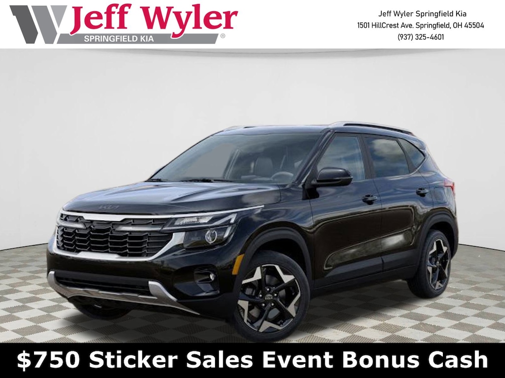 Priced below KBB Fair Purchase Price! Jeff Wyler Springfield Auto Mall is very proud to offer this wonderful 2025 Kia Seltos S in Fusion Black. Well equipped with: 4-Wheel Disc Brakes, 6 Speakers, ABS brakes, Air Conditioning, Alloy wheels, AM/FM radio: SiriusXM, Apple CarPlay & Android Auto, Auto High-beam Headlights, Automatic temperature control, Brake assist, Bumpers: body-color, Cloth & Artificial Leather Seat Trim, Delay-off headlights, Driver door bin, Driver vanity mirror, Dual front impact airbags, Dual front side impact airbags, Electronic Stability Control, Emergency communication system: 911 Connect, Exterior Parking Camera Rear, Four wheel independent suspension, Front anti-roll bar, Front Bucket Seats, Front Center Armrest, Front fog lights, Front reading lights, Fully automatic headlights, Heated door mirrors, Heated Front Bucket Seats (3-Steps), Heated front seats, Illuminated entry, Interior Light Kit, Leather Shift Knob, Leather steering wheel, Low tire pressure warning, Navigation System, Occupant sensing airbag, Outside temperature display, Overhead airbag, Overhead console, Panic alarm, Passenger door bin, Passenger vanity mirror, Power door mirrors, Power steering, Power windows, Radio: AM/FM/HD/Satellite Display System w/Navigation, Rear seat center armrest, Rear window defroster, Rear window wiper, Remote keyless entry, Security system, Speed control, Speed-sensing steering, Split folding rear seat, Spoiler, Steering wheel mounted audio controls, Tachometer, Telescoping steering wheel, Tilt steering wheel, Traction control, Trip computer, Turn signal indicator mirrors, Variably intermittent wipers, and Wheels: 17" Alloy w/Machined Finished. 27/31 City/Highway MPG 27/31 City/Highway MPGWyler Family First Package Includes: NanoCure Appearance Protection: Exterior & Interior Chemical Sealant Applied to Protect Against Environmental Hazards (7 Year Warranty Coverage). Pulse- Rear end Collision Avoidance System Theft Deterrent Strategy gives you 5 Years of Coverage against vehicle Theft, Offering up to a $5,000 benefit. Available Incentives: $1000 - KFA Dealer Choice Program: $1000 discount and 5.25% APR for 36 months. $30.08 per $1000 financed. Available to well qualified buyers who finance through Kia Finance America. 506. Exp. 12/01/2025 $500 - Military Program. Exp. 12/01/2025 $750 - Sticker Sales Event Retail Bonus Cash. Exp. 12/01/2025