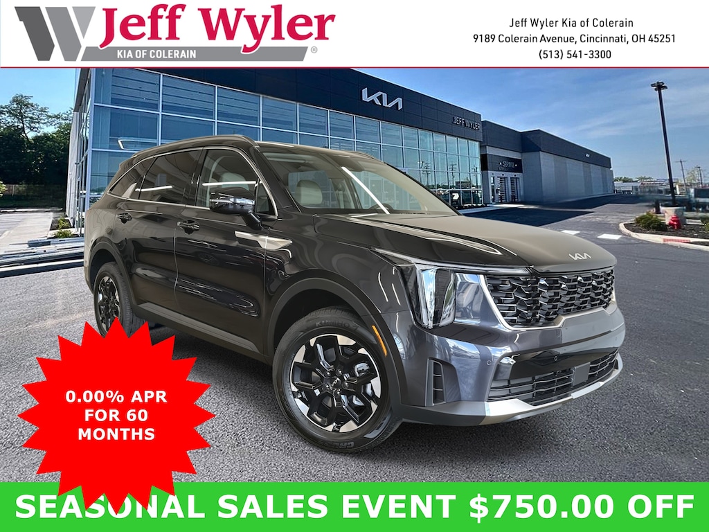 Jeff Wyler Kia of Colerain is very proud to offer this great-looking 2025 Kia Sorento S in Panthera Metal. 3rd row seats: split-bench, 4-Wheel Disc Brakes, 6 Speakers, ABS brakes, Air Conditioning, Alloy wheels, AM/FM radio: SiriusXM, Apple CarPlay & Android Auto, Auto High-beam Headlights, Automatic temperature control, Brake assist, Bumpers: body-color, Carpeted Floor Mats, Delay-off headlights, Driver door bin, Driver vanity mirror, Dual front impact airbags, Dual front side impact airbags, Electronic Stability Control, Emergency communication system: 911 Connect, Exterior Parking Camera Rear, Four wheel independent suspension, Front anti-roll bar, Front Bucket Seats, Front Center Armrest, Front dual zone A/C, Front reading lights, Fully automatic headlights, Heated door mirrors, Heated Front Bucket Seats, Heated front seats, Illuminated entry, Knee airbag, Leather Shift Knob, Leather steering wheel, Low tire pressure warning, Navigation System, Occupant sensing airbag, Outside temperature display, Overhead airbag, Overhead console, Panic alarm, Passenger door bin, Passenger vanity mirror, Power door mirrors, Power driver seat, Power steering, Power windows, Radio data system, Radio: AM/FM Standard Sound System, Rear anti-roll bar, Rear reading lights, Rear seat center armrest, Rear side impact airbag, Rear window defroster, Rear window wiper, Remote keyless entry, Security system, Speed control, Speed-sensing steering, Split folding rear seat, Spoiler, Steering wheel mounted audio controls, SynTex Artificial Leather Seat Trim, Tachometer, Telescoping steering wheel, Tilt steering wheel, Traction control, Trip computer, Turn signal indicator mirrors, Variably intermittent wipers, and Wheels: 18" Gloss Black Alloy Our PRE-OWNED vehicles are put through a rigorous 167- POINT QUALITY ASSURANCE INSPECTION along with an average amount of over $1,400.00 SPENT to recondition each vehicle so we can be sure to deliver you the highest quality vehicle like you deserve! ***ONLINE PRICE DOES NOT INCLUDE WYLER FAMILY FIRST PACKAGE***