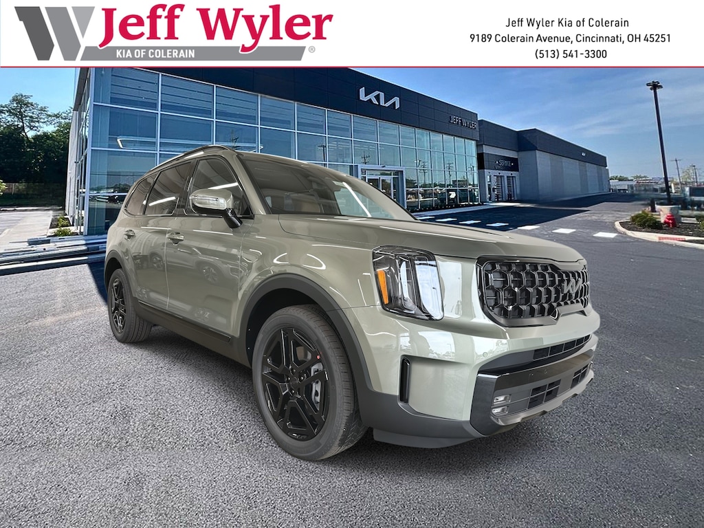 Jeff Wyler Kia of Colerain is excited to offer this good-looking 2025 Kia Telluride SX-Prestige X-Line in Jungle Green. Terracotta Interior Color Package, 10 Speakers, 3rd row seats: split-bench, 4-Wheel Disc Brakes, ABS brakes, Air Conditioning, Alloy wheels, AM/FM radio: SiriusXM, Apple CarPlay & Android Auto, Auto High-beam Headlights, Auto-dimming Rear-View mirror, Auto-leveling suspension, Automatic temperature control, Brake assist, Bumpers: body-color, Compass, Delay-off headlights, Driver door bin, Driver vanity mirror, Dual front impact airbags, Dual front side impact airbags, Electronic Stability Control, Emergency communication system: 911 Connect, Exterior Parking Camera Rear, Four wheel independent suspension, Front anti-roll bar, Front Bucket Seats, Front Center Armrest, Front dual zone A/C, Front fog lights, Front reading lights, Fully automatic headlights, Garage door transmitter: HomeLink, harman/kardon® Speakers, Heads-Up Display, Heated & Ventilated Front Bucket Seats, Heated door mirrors, Heated front seats, Heated rear seats, Heated steering wheel, Illuminated entry, Knee airbag, Leather Shift Knob, Leather steering wheel, Low tire pressure warning, Memory seat, Nappa Leather Seat Trim, Navigation System, Occupant sensing airbag, Outside temperature display, Overhead airbag, Overhead console, Panic alarm, Passenger door bin, Passenger vanity mirror, Power door mirrors, Power driver seat, Power Liftgate, Power moonroof, Power passenger seat, Power steering, Power windows, Radio data system, Radio: AM/FM Harman Kardon Audio System, Rain sensing wipers, Rear air conditioning, Rear anti-roll bar, Rear audio controls, Rear reading lights, Rear side impact airbag, Rear window defroster, Rear window wiper, Reclining 3rd row seat, Remote keyless entry, Security system, Speed control, Speed-sensing steering, Split folding rear seat, Spoiler, Steering wheel mounted audio controls, Tachometer, Telescoping steering wheel, Tilt steering wheel, Traction control, Trip computer, Turn signal indicator mirrors, Variably intermittent wipers, Ventilated front seats, Ventilated rear seats, and Wheels: 20" x 7.5" Black Finish X-LINE Exclusive Our PRE-OWNED vehicles are put through a rigorous 167- POINT QUALITY ASSURANCE INSPECTION along with an average amount of over $1,400.00 SPENT to recondition each vehicle so we can be sure to deliver you the highest quality vehicle like you deserve! ***ONLINE PRICE DOES NOT INCLUDE WYLER FAMILY FIRST PACKAGE*** Price includes: $750 - Sticker Sales Event Retail Bonus Cash. Exp. 12/01/2025