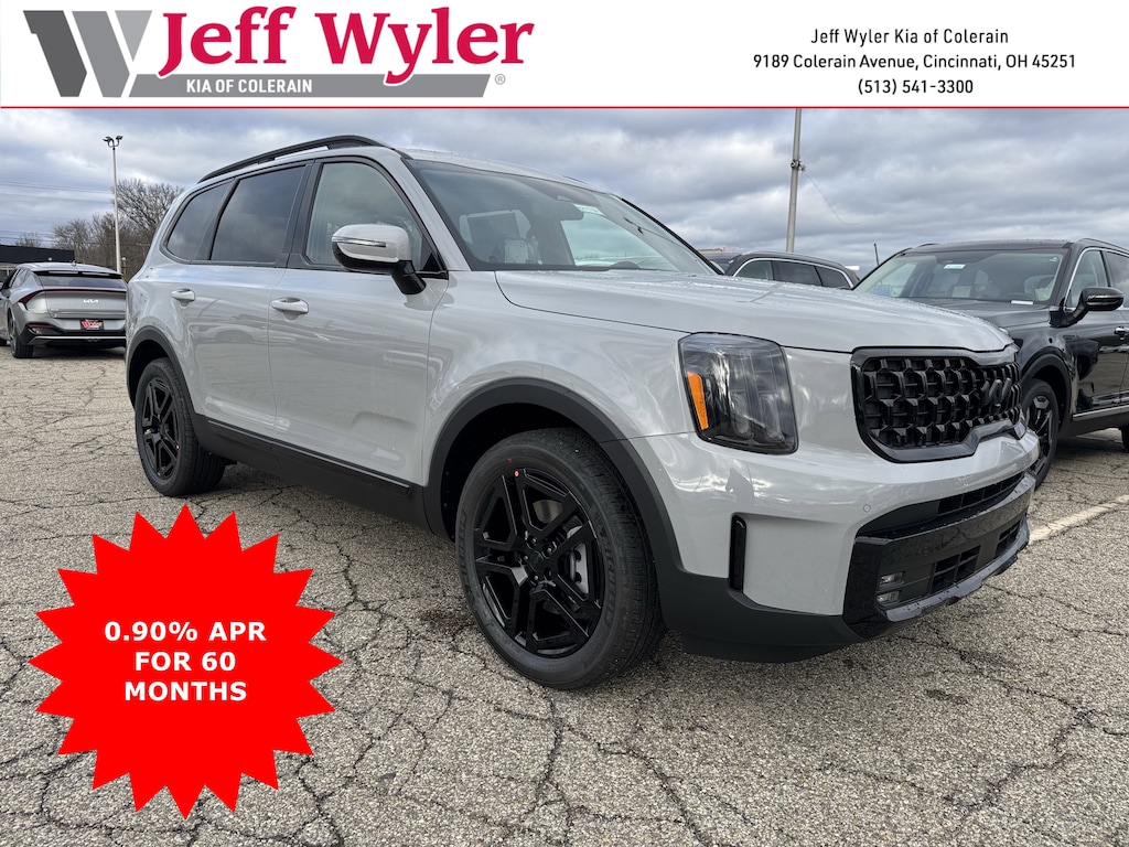 Jeff Wyler Kia of Colerain is very proud to offer this outstanding-looking 2025 Kia Telluride SX-Prestige X-Line in Gray. 10 Speakers, 3rd row seats: split-bench, 4-Wheel Disc Brakes, ABS brakes, Air Conditioning, Alloy wheels, AM/FM radio: SiriusXM, Apple CarPlay & Android Auto, Auto High-beam Headlights, Auto-dimming Rear-View mirror, Auto-leveling suspension, Automatic temperature control, Brake assist, Bumpers: body-color, Compass, Delay-off headlights, Driver door bin, Driver vanity mirror, Dual front impact airbags, Dual front side impact airbags, Electronic Stability Control, Emergency communication system: 911 Connect, Exterior Parking Camera Rear, Four wheel independent suspension, Front anti-roll bar, Front Bucket Seats, Front Center Armrest, Front dual zone A/C, Front fog lights, Front reading lights, Fully automatic headlights, Garage door transmitter: HomeLink, harman/kardon® Speakers, Heads-Up Display, Heated & Ventilated Front Bucket Seats, Heated door mirrors, Heated front seats, Heated rear seats, Heated steering wheel, Illuminated entry, Knee airbag, Leather Shift Knob, Leather steering wheel, Low tire pressure warning, Memory seat, Nappa Leather Seat Trim, Navigation System, Occupant sensing airbag, Outside temperature display, Overhead airbag, Overhead console, Panic alarm, Passenger door bin, Passenger vanity mirror, Power door mirrors, Power driver seat, Power Liftgate, Power moonroof, Power passenger seat, Power steering, Power windows, Radio data system, Radio: AM/FM Harman Kardon Audio System, Rain sensing wipers, Rear air conditioning, Rear anti-roll bar, Rear audio controls, Rear reading lights, Rear side impact airbag, Rear window defroster, Rear window wiper, Reclining 3rd row seat, Remote keyless entry, Security system, Speed control, Speed-sensing steering, Split folding rear seat, Spoiler, Steering wheel mounted audio controls, Tachometer, Telescoping steering wheel, Tilt steering wheel, Traction control, Trip computer, Turn signal indicator mirrors, Variably intermittent wipers, Ventilated front seats, Ventilated rear seats, and Wheels: 20" x 7.5" Black Finish X-LINE Exclusive Our PRE-OWNED vehicles are put through a rigorous 167- POINT QUALITY ASSURANCE INSPECTION along with an average amount of over $1,400.00 SPENT to recondition each vehicle so we can be sure to deliver you the highest quality vehicle like you deserve! ***ONLINE PRICE DOES NOT INCLUDE WYLER FAMILY FIRST PACKAGE***