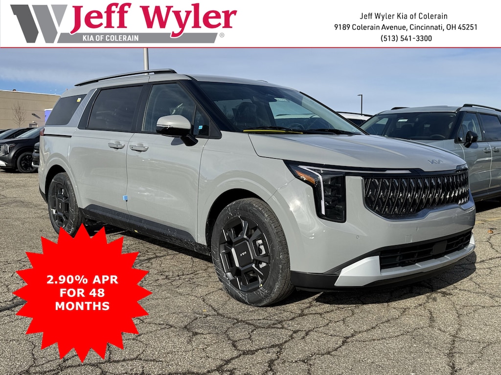Jeff Wyler Kia of Colerain is very proud to offer this stunning-looking 2026 Kia Carnival Hybrid EX in Ceramic White. 3rd row seats: split-bench, 4-Wheel Disc Brakes, 8 Speakers, ABS brakes, Air Conditioning, Alloy wheels, AM/FM radio: SiriusXM, Apple CarPlay & Android Auto, Artificial Leather Seat Trim, Auto High-beam Headlights, Automatic temperature control, Brake assist, Bumpers: body-color, Compass, Delay-off headlights, Driver door bin, Driver vanity mirror, Dual front impact airbags, Dual front side impact airbags, Electronic Stability Control, Emergency communication system, Exterior Parking Camera Rear, Four wheel independent suspension, Front anti-roll bar, Front Bucket Seats, Front Center Armrest, Front dual zone A/C, Front reading lights, Fully automatic headlights, Heated door mirrors, Heated Front Bucket Seats, Heated front seats, Illuminated entry, Knee airbag, Leather Shift Knob, Leather steering wheel, Low tire pressure warning, Memory seat, Navigation System, Occupant sensing airbag, Outside temperature display, Overhead airbag, Overhead console, Panic alarm, Passenger door bin, Passenger vanity mirror, Power door mirrors, Power driver seat, Power Liftgate, Power passenger seat, Power steering, Power windows, Radio: Navigation System w/SiriusXM, Rear air conditioning, Rear anti-roll bar, Rear reading lights, Rear window defroster, Rear window wiper, Reclining 3rd row seat, Remote keyless entry, Security system, Speed control, Speed-sensing steering, Split folding rear seat, Spoiler, Steering wheel mounted audio controls, Tachometer, Telescoping steering wheel, Tilt steering wheel, Traction control, Trip computer, Turn signal indicator mirrors, Variably intermittent wipers, and Wheels: 19" Black Alloy Our PRE-OWNED vehicles are put through a rigorous 167- POINT QUALITY ASSURANCE INSPECTION along with an average amount of over $1,400.00 SPENT to recondition each vehicle so we can be sure to deliver you the highest quality vehicle like you deserve! ***ONLINE PRICE DOES NOT INCLUDE WYLER FAMILY FIRST PACKAGE***