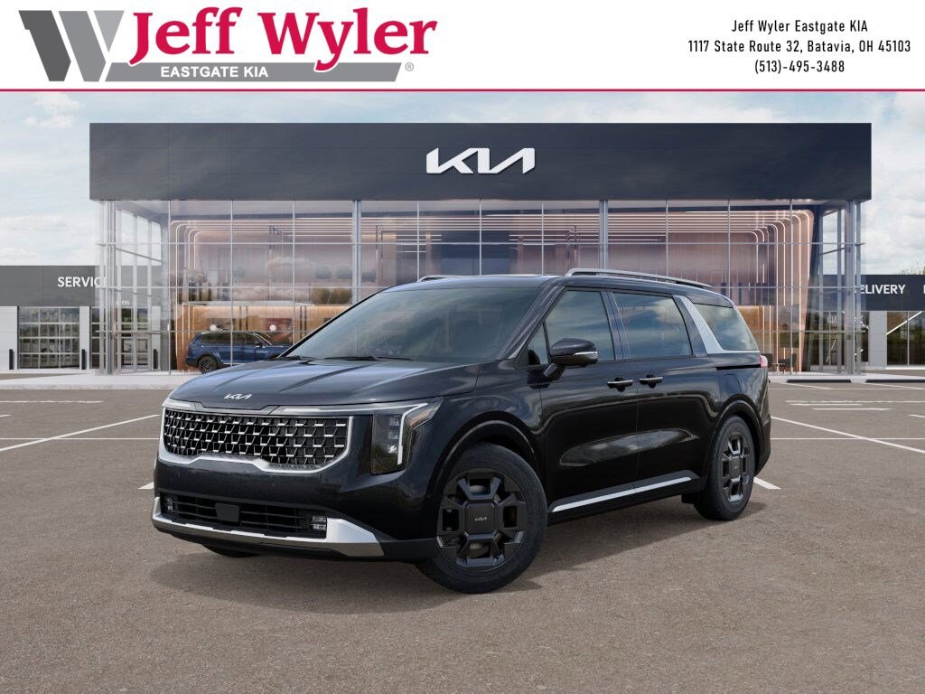Panthera Metal 2026 Kia Carnival SX V6 FWD 8-Speed Automatic 18/25 City/Highway MPG Jeff Wyler Eastgate Auto Mall is very proud to offer this beautiful 2026 Kia Carnival SX in Panthera Metal. Well equipped with: 3.51 Axle Ratio, 3rd row seats: split-bench, 4-Wheel Disc Brakes, 8 Speakers, ABS brakes, Air Conditioning, All Weather Floor Mats (8-Passenger), Alloy wheels, AM/FM radio: SiriusXM, Apple CarPlay & Android Auto, Artificial Leather Seat Trim, Auto High-beam Headlights, Auto-Dimming Mirror with HomeLink, Automatic temperature control, Brake assist, Bumpers: body-color, Compass, Delay-off headlights, Driver door bin, Driver vanity mirror, Dual front impact airbags, Dual front side impact airbags, Electronic Stability Control, Emergency communication system, Exterior Parking Camera Rear, Four wheel independent suspension, Front anti-roll bar, Front Bucket Seats, Front Center Armrest, Front dual zone A/C, Front fog lights, Front reading lights, Fully automatic headlights, Heated and Ventilated Front Bucket Seats, Heated door mirrors, Heated front seats, Illuminated entry, Knee airbag, Leather Shift Knob, Leather steering wheel, Low tire pressure warning, Memory seat, Navigation System, Occupant sensing airbag, Outside temperature display, Overhead airbag, Overhead console, Panic alarm, Passenger door bin, Passenger vanity mirror, Power 2nd-Row Moonroof, Power door mirrors, Power driver seat, Power Liftgate, Power moonroof, Power passenger seat, Power steering, Power windows, Radio: AM/FM/HD Audio System, Rain sensing wipers, Rear air conditioning, Rear anti-roll bar, Rear reading lights, Rear window defroster, Rear window wiper, Reclining 3rd row seat, Remote keyless entry, Security system, Speed control, Speed-sensing steering, Split folding rear seat, Spoiler, Steering wheel mounted audio controls, Tachometer, Telescoping steering wheel, Tilt steering wheel, Traction control, Trip computer, Turn signal indicator mirrors, Variably intermittent wipers, Ventilated front seats, Wheels: 7.5J x 19" Alloy Dark Edition, and Wheels: 7.5J x 19" Black Alloy.
