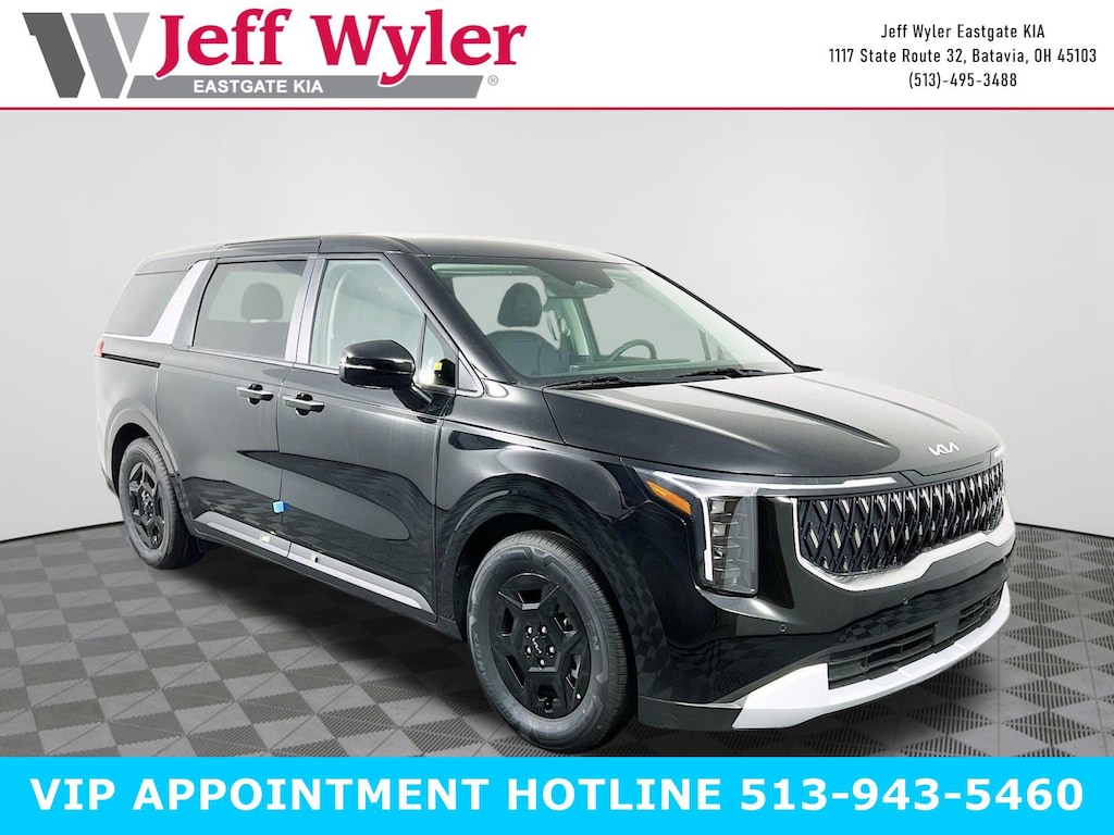 Aurora Black Pearl 2026 Kia Carnival LXS V6 FWD 8-Speed Automatic 18/26 City/Highway MPG Jeff Wyler Eastgate Auto Mall is excited to offer this great 2026 Kia Carnival LXS in Aurora Black Pearl. Well equipped with: 3.51 Axle Ratio, 3rd row seats: split-bench, 4-Wheel Disc Brakes, 6 Speakers, 6.5J x 17" Alloy Wheels, ABS brakes, Air Conditioning, Alloy wheels, AM/FM radio: SiriusXM, Apple CarPlay & Android Auto, Artificial Leather Seat Trim, Auto High-beam Headlights, Auto-Dimming Mirror with HomeLink, Automatic temperature control, Brake assist, Bumpers: body-color, Carpeted Floor Mats (8-Passenger), Compass, Delay-off headlights, Driver door bin, Driver vanity mirror, Dual front impact airbags, Dual front side impact airbags, Electronic Stability Control, Emergency communication system, Exterior Parking Camera Rear, Four wheel independent suspension, Front anti-roll bar, Front Bucket Seats, Front Center Armrest, Front dual zone A/C, Front reading lights, Fully automatic headlights, Heated door mirrors, Heated Front Bucket Seats, Heated front seats, Illuminated entry, Knee airbag, Leather Shift Knob, Leather steering wheel, Low tire pressure warning, Navigation System, Occupant sensing airbag, Outside temperature display, Overhead airbag, Overhead console, Panic alarm, Passenger door bin, Passenger vanity mirror, Power door mirrors, Power driver seat, Power steering, Power windows, Radio: AM/FM/HD Audio System, Rear air conditioning, Rear anti-roll bar, Rear reading lights, Rear window defroster, Rear window wiper, Reclining 3rd row seat, Remote keyless entry, Security system, Speed control, Speed-sensing steering, Split folding rear seat, Spoiler, Steering wheel mounted audio controls, Tachometer, Telescoping steering wheel, Tilt steering wheel, Traction control, Trip computer, Turn signal indicator mirrors, and Variably intermittent wipers. 18/26 City/Highway MPG
