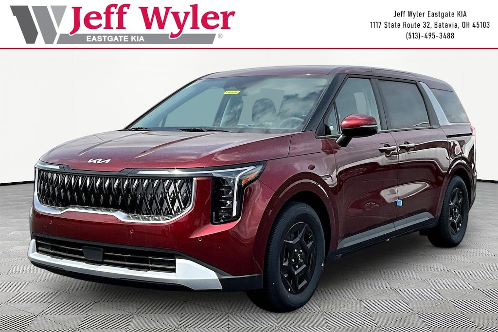 Flare Red 2026 Kia Carnival LXS V6 FWD 8-Speed Automatic 18/26 City/Highway MPG Jeff Wyler Eastgate Auto Mall is excited to offer this good-looking 2026 Kia Carnival LXS in Flare Red. Well equipped with: 3.51 Axle Ratio, 3rd row seats: split-bench, 4-Wheel Disc Brakes, 6 Speakers, 6.5J x 17" Alloy Wheels, ABS brakes, Air Conditioning, Alloy wheels, AM/FM radio: SiriusXM, Apple CarPlay & Android Auto, Artificial Leather Seat Trim, Auto High-beam Headlights, Auto-Dimming Mirror with HomeLink, Automatic temperature control, Brake assist, Bumpers: body-color, Compass, Delay-off headlights, Driver door bin, Driver vanity mirror, Dual front impact airbags, Dual front side impact airbags, Electronic Stability Control, Emergency communication system, Exterior Parking Camera Rear, Four wheel independent suspension, Front anti-roll bar, Front Bucket Seats, Front Center Armrest, Front dual zone A/C, Front reading lights, Fully automatic headlights, Heated door mirrors, Heated Front Bucket Seats, Heated front seats, Illuminated entry, Knee airbag, Leather Shift Knob, Leather steering wheel, Low tire pressure warning, Navigation System, Occupant sensing airbag, Outside temperature display, Overhead airbag, Overhead console, Panic alarm, Passenger door bin, Passenger vanity mirror, Power door mirrors, Power driver seat, Power steering, Power windows, Radio: AM/FM/HD Audio System, Rear air conditioning, Rear anti-roll bar, Rear reading lights, Rear window defroster, Rear window wiper, Reclining 3rd row seat, Remote keyless entry, Security system, Speed control, Speed-sensing steering, Split folding rear seat, Spoiler, Steering wheel mounted audio controls, Tachometer, Telescoping steering wheel, Tilt steering wheel, Traction control, Trip computer, Turn signal indicator mirrors, and Variably intermittent wipers. 18/26 City/Highway MPG