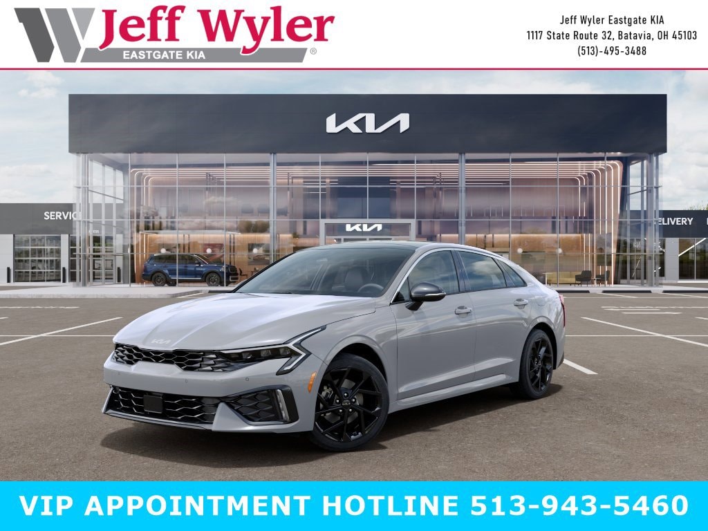 Wolf Gray 2026 Kia K5 GT-Line I4 AWD 8-Speed Automatic 24/33 City/Highway MPG Jeff Wyler Eastgate Auto Mall is proud to offer this wonderful 2026 Kia K5 GT-Line in Wolf Gray. Well equipped with: GT-Line Premium Package (Active Sound Design, Bose Premium Audio, LED Interior Lighting, Panoramic Sunroof, and Wheels: 18" x 7.5J Unique Gloss Black Alloy), GT-Line Red Interior Package (SynTex Seat Trim), 4-Wheel Disc Brakes, 6 Speakers, ABS brakes, Air Conditioning, Alloy wheels, AM/FM radio: SiriusXM, Apple CarPlay & Android Auto, Auto High-beam Headlights, Auto-Dimming Mirror with HomeLink, Automatic temperature control, Brake assist, Bumpers: body-color, Carpeted Floor Mats, Delay-off headlights, Driver door bin, Driver vanity mirror, Dual front impact airbags, Dual front side impact airbags, Electronic Stability Control, Emergency communication system: Kia Connect (includes 1 year free trial), Four wheel independent suspension, Front anti-roll bar, Front Bucket Seats, Front Center Armrest, Front dual zone A/C, Front fog lights, Front reading lights, Fully automatic headlights, Heated door mirrors, Heated Front Bucket Seats, Heated front seats, Heated steering wheel, Illuminated entry, Knee airbag, Leather Shift Knob, Leather steering wheel, Low tire pressure warning, Navigation System, Occupant sensing airbag, Outside temperature display, Overhead airbag, Overhead console, Panic alarm, Passenger door bin, Passenger vanity mirror, Power door mirrors, Power driver seat, Power steering, Power windows, Radio data system, Radio: AM/FM Audio System, Rear anti-roll bar, Rear seat center armrest, Rear side impact airbag, Rear window defroster, Remote keyless entry, Security system, Speed control, Speed-sensing steering, Split folding rear seat, Sport steering wheel, Steering wheel mounted audio controls, Tachometer, Telescoping steering wheel, Tilt steering wheel, Traction control, Trip computer, Turn signal indicator mirrors, Variably intermittent wipers, and Wheels: 18" x 7.5J Gloss Black Machined Finish Alloy. 24/33 City/Highway MPG