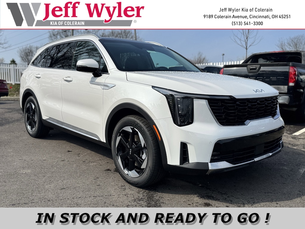 Jeff Wyler Kia of Colerain is very proud to offer this charming 2026 Kia Sorento Hybrid EX in Snow White Pearl. EX Premium Package (2nd Row Captain's Chairs, Full-Length One-Touch Panoroof with Sliding Sunshade, LED Interior Lighting, and Radio: AM/FM Bose Premium Audio System), 3rd row seats: split-bench, 4-Wheel Disc Brakes, 6 Speakers, ABS brakes, Air Conditioning, Alloy wheels, AM/FM radio: SiriusXM, Apple CarPlay & Android Auto, Auto High-beam Headlights, Auto-dimming Rear-View mirror, Automatic temperature control, Brake assist, Bumpers: body-color, Carpeted Floor Mats, Delay-off headlights, Driver door bin, Driver vanity mirror, Dual front impact airbags, Dual front side impact airbags, Electronic Stability Control, Emergency communication system: 911 Connect, Exterior Parking Camera Rear, Four wheel independent suspension, Front anti-roll bar, Front Bucket Seats, Front Center Armrest, Front dual zone A/C, Front fog lights, Front reading lights, Fully automatic headlights, Heated door mirrors, Heated Front Bucket Seats, Heated front seats, Illuminated entry, Knee airbag, Leather steering wheel, Low tire pressure warning, Navigation System, Occupant sensing airbag, Outside temperature display, Overhead airbag, Overhead console, Panic alarm, Passenger door bin, Passenger vanity mirror, Power door mirrors, Power driver seat, Power Liftgate, Power passenger seat, Power steering, Power windows, Radio data system, Radio: AM/FM/SiriusXM Audio System, Rear anti-roll bar, Rear reading lights, Rear seat center armrest, Rear side impact airbag, Rear window defroster, Rear window wiper, Remote keyless entry, Security system, Speed control, Speed-sensing steering, Split folding rear seat, Spoiler, Steering wheel mounted audio controls, SynTex Artificial Leather Seat Trim, Tachometer, Telescoping steering wheel, Tilt steering wheel, Traction control, Trip computer, Turn signal indicator mirrors, Variably intermittent wipers, and Wheels: 19" Machine-Finished Aero Alloy Our PRE-OWNED vehicles are put through a rigorous 167- POINT QUALITY ASSURANCE INSPECTION along with an average amount of over $1,400.00 SPENT to recondition each vehicle so we can be sure to deliver you the highest quality vehicle like you deserve! ***ONLINE PRICE DOES NOT INCLUDE WYLER FAMILY FIRST PACKAGE***