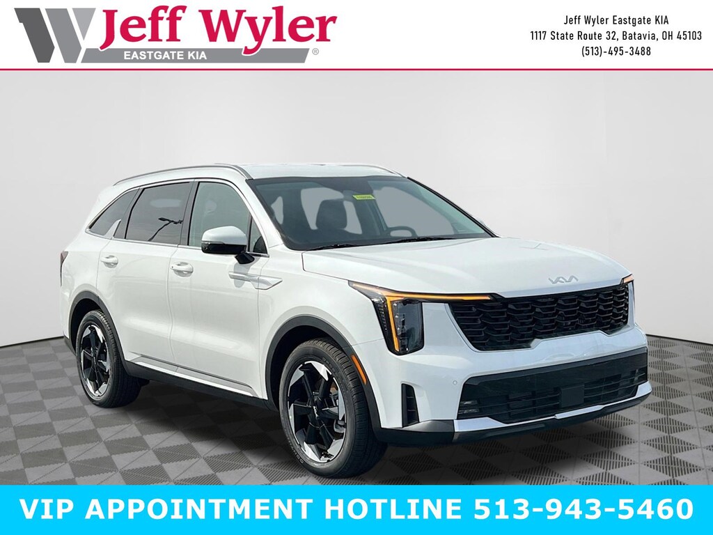 Priced below KBB Fair Purchase Price! Snow White Pearl 2026 Kia Sorento Hybrid EX 1.6L Turbo GDI 4-Cylinder FWD 6-Speed Automatic 37/36 City/Highway MPG Jeff Wyler Eastgate Auto Mall is delighted to offer this terrific-looking 2026 Kia Sorento Hybrid EX in Snow White Pearl. Well equipped with: 3rd row seats: split-bench, 4-Wheel Disc Brakes, 6 Speakers, ABS brakes, Air Conditioning, Alloy wheels, AM/FM radio: SiriusXM, Apple CarPlay & Android Auto, Auto High-beam Headlights, Auto-Dimming Mirror with HomeLink, Auto-dimming Rear-View mirror, Automatic temperature control, Brake assist, Bumpers: body-color, Carpeted Floor Mats, Delay-off headlights, Driver door bin, Driver vanity mirror, Dual front impact airbags, Dual front side impact airbags, Electronic Stability Control, Emergency communication system: 911 Connect, Exterior Parking Camera Rear, Four wheel independent suspension, Front anti-roll bar, Front Bucket Seats, Front Center Armrest, Front dual zone A/C, Front fog lights, Front reading lights, Fully automatic headlights, Heated door mirrors, Heated Front Bucket Seats, Heated front seats, Illuminated entry, Knee airbag, Leather steering wheel, Low tire pressure warning, Navigation System, Occupant sensing airbag, Outside temperature display, Overhead airbag, Overhead console, Panic alarm, Passenger door bin, Passenger vanity mirror, Power door mirrors, Power driver seat, Power Liftgate, Power passenger seat, Power steering, Power windows, Radio data system, Radio: AM/FM/SiriusXM Audio System, Rear anti-roll bar, Rear reading lights, Rear seat center armrest, Rear side impact airbag, Rear window defroster, Rear window wiper, Remote keyless entry, Security system, Speed control, Speed-sensing steering, Split folding rear seat, Spoiler, Steering wheel mounted audio controls, SynTex Artificial Leather Seat Trim, Tachometer, Telescoping steering wheel, Tilt steering wheel, Traction control, Trip computer, Turn signal indicator mirrors, Variably intermittent wipers, and Wheels: 19" Machine-Finished Aero Alloy. 37/36 City/Highway MPG Price includes: $2500 - Kia Customer Cash. Exp. 03/31/2026