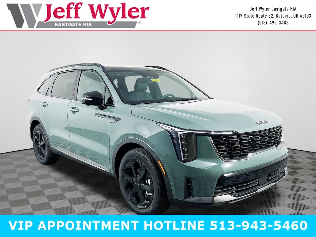Priced below KBB Fair Purchase Price! Cityscape Green 2026 Kia Sorento Hybrid X-Line SX Prestige 1.6L Turbo GDI 4-Cylinder AWD 6-Speed Automatic 32/35 City/Highway MPG Jeff Wyler Eastgate Auto Mall is very proud to offer this stunning-looking 2026 Kia Sorento Hybrid X-Line SX Prestige in Cityscape Green. Well equipped with: 12 Speakers, 3rd row seats: split-bench, 4-Wheel Disc Brakes, ABS brakes, Air Conditioning, All Weather Floor Mats, Alloy wheels, AM/FM radio: SiriusXM, Apple CarPlay & Android Auto, Auto High-beam Headlights, Auto-dimming Rear-View mirror, Automatic temperature control, Brake assist, Bumpers: body-color, Delay-off headlights, Driver door bin, Driver vanity mirror, Dual front impact airbags, Dual front side impact airbags, Electronic Stability Control, Emergency communication system: 911 Connect, Exterior Parking Camera Rear, Four wheel independent suspension, Front anti-roll bar, Front Bucket Seats, Front Center Armrest, Front dual zone A/C, Front fog lights, Front reading lights, Fully automatic headlights, Garage door transmitter: HomeLink, Heated and Ventilated Front Bucket Seats, Heated door mirrors, Heated front seats, Heated rear seats, Heated steering wheel, Illuminated entry, Knee airbag, Leather steering wheel, Low tire pressure warning, Memory seat, Navigation System, Occupant sensing airbag, Outside temperature display, Overhead airbag, Overhead console, Panic alarm, Passenger door bin, Passenger vanity mirror, Perforated Genuine Leather Seat Trim, Power door mirrors, Power driver seat, Power Liftgate, Power moonroof, Power passenger seat, Power steering, Power windows, Radio data system, Radio: AM/FM/SiriusXM Audio System, Rain sensing wipers, Rear anti-roll bar, Rear reading lights, Rear side impact airbag, Rear window defroster, Rear window wiper, Remote keyless entry, Security system, Speed control, Speed-sensing steering, Split folding rear seat, Spoiler, Steering wheel mounted audio controls, Tachometer, Telescoping steering wheel, Tilt steering wheel, Traction control, Trip computer, Turn signal indicator mirrors, Variably intermittent wipers, Ventilated front seats, and Wheels: 19" Machine-Finished Aero Alloy. 32/35 City/Highway MPG Price includes: $2500 - Kia Customer Cash. Exp. 03/31/2026