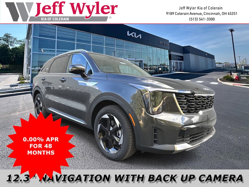 Jeff Wyler Kia of Colerain is very proud to offer this charming-looking 2026 Kia Sorento Hybrid EX in Interstellar Gray. EX Premium Package (2nd Row Captain's Chairs, Full-Length One-Touch Panoroof w/Sliding Sunshade, LED Interior Lighting, and Radio: AM/FM Bose Premium Audio System), 3rd row seats: split-bench, 4-Wheel Disc Brakes, 6 Speakers, ABS brakes, Air Conditioning, Alloy wheels, AM/FM radio: SiriusXM, Apple CarPlay & Android Auto, Auto High-beam Headlights, Auto-Dimming Mirror w/HomeLink, Auto-dimming Rear-View mirror, Automatic temperature control, Brake assist, Bumpers: body-color, Carpeted Floor Mats, Delay-off headlights, Driver door bin, Driver vanity mirror, Dual front impact airbags, Dual front side impact airbags, Electronic Stability Control, Emergency communication system: 911 Connect, Exterior Parking Camera Rear, Four wheel independent suspension, Front anti-roll bar, Front Bucket Seats, Front Center Armrest, Front dual zone A/C, Front fog lights, Front reading lights, Fully automatic headlights, Heated door mirrors, Heated Front Bucket Seats, Heated front seats, Illuminated entry, Knee airbag, Leather steering wheel, Low tire pressure warning, Navigation System, Occupant sensing airbag, Outside temperature display, Overhead airbag, Overhead console, Panic alarm, Passenger door bin, Passenger vanity mirror, Power door mirrors, Power driver seat, Power Liftgate, Power passenger seat, Power steering, Power windows, Radio data system, Radio: AM/FM/SiriusXM Audio System, Rear anti-roll bar, Rear reading lights, Rear seat center armrest, Rear side impact airbag, Rear window defroster, Rear window wiper, Remote keyless entry, Security system, Speed control, Speed-sensing steering, Split folding rear seat, Spoiler, Steering wheel mounted audio controls, SynTex Artificial Leather Seat Trim, Tachometer, Telescoping steering wheel, Tilt steering wheel, Traction control, Trip computer, Turn signal indicator mirrors, Variably intermittent wipers, Wheel Locks, and Wheels: 19" Machine-Finished Aero Alloy Our PRE-OWNED vehicles are put through a rigorous 167- POINT QUALITY ASSURANCE INSPECTION along with an average amount of over $1,400.00 SPENT to recondition each vehicle so we can be sure to deliver you the highest quality vehicle like you deserve! ***ONLINE PRICE DOES NOT INCLUDE WYLER FAMILY FIRST PACKAGE***