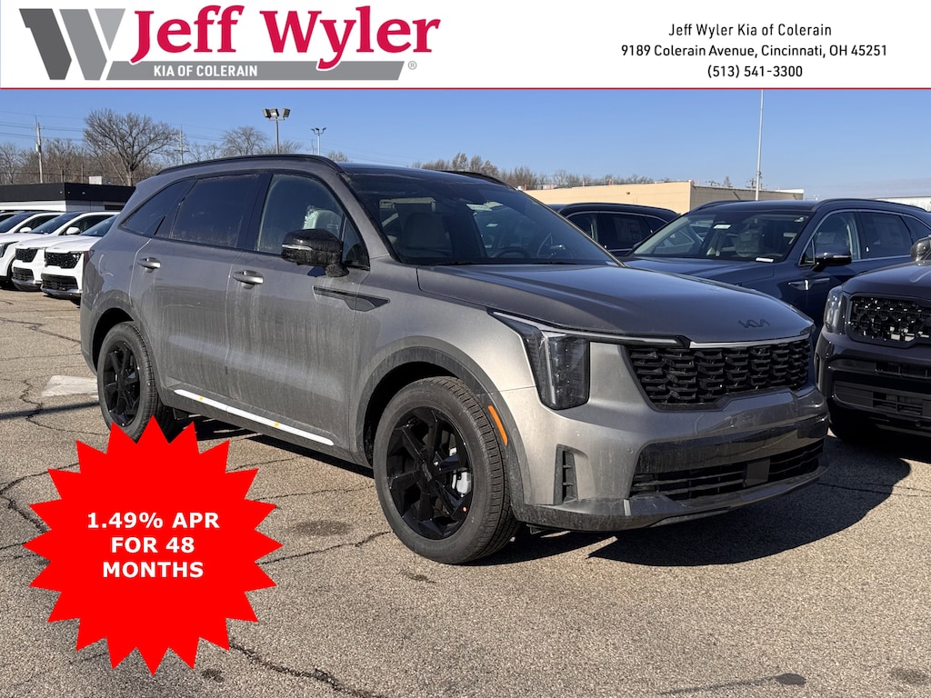 Jeff Wyler Kia of Colerain is pleased to offer this attractive-looking 2026 Kia Sorento Hybrid SX Prestige in Sand. 12 Speakers, 3rd row seats: split-bench, 4-Wheel Disc Brakes, ABS brakes, Air Conditioning, Alloy wheels, AM/FM radio: SiriusXM, Apple CarPlay & Android Auto, Auto High-beam Headlights, Auto-dimming Rear-View mirror, Automatic temperature control, Brake assist, Bumpers: body-color, Delay-off headlights, Driver door bin, Driver vanity mirror, Dual front impact airbags, Dual front side impact airbags, Electronic Stability Control, Emergency communication system: 911 Connect, Exterior Parking Camera Rear, Four wheel independent suspension, Front anti-roll bar, Front Bucket Seats, Front Center Armrest, Front dual zone A/C, Front fog lights, Front reading lights, Fully automatic headlights, Garage door transmitter: HomeLink, Heated & Ventilated Front Bucket Seats, Heated door mirrors, Heated front seats, Heated rear seats, Heated steering wheel, Illuminated entry, Knee airbag, Leather steering wheel, Low tire pressure warning, Memory seat, Navigation System, Occupant sensing airbag, Outside temperature display, Overhead airbag, Overhead console, Panic alarm, Passenger door bin, Passenger vanity mirror, Perforated Genuine Leather Seat Trim, Power door mirrors, Power driver seat, Power Liftgate, Power moonroof, Power passenger seat, Power steering, Power windows, Radio data system, Radio: AM/FM/SiriusXM Audio System, Rain sensing wipers, Rear anti-roll bar, Rear reading lights, Rear side impact airbag, Rear window defroster, Rear window wiper, Remote keyless entry, Security system, Speed control, Speed-sensing steering, Split folding rear seat, Spoiler, Steering wheel mounted audio controls, Tachometer, Telescoping steering wheel, Tilt steering wheel, Traction control, Trip computer, Turn signal indicator mirrors, Variably intermittent wipers, Ventilated front seats, and Wheels: 19" Machine-Finished Aero Alloy Our PRE-OWNED vehicles are put through a rigorous 167- POINT QUALITY ASSURANCE INSPECTION along with an average amount of over $1,400.00 SPENT to recondition each vehicle so we can be sure to deliver you the highest quality vehicle like you deserve! ***ONLINE PRICE DOES NOT INCLUDE WYLER FAMILY FIRST PACKAGE***