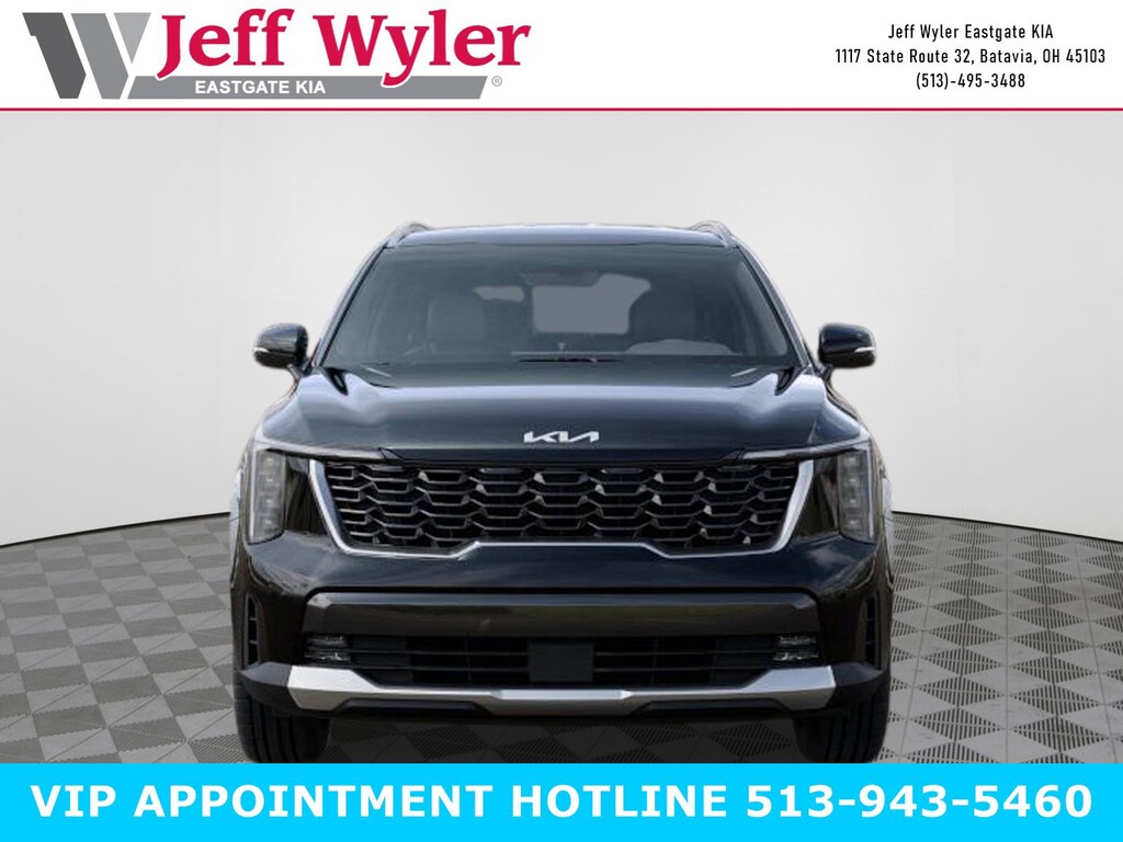 Aurora Black 2026 Kia Sorento Plug-In Hybrid EX 1.6L I4 DGI Hybrid Turbocharged DOHC 16V LEV3-SULEV30 AWD 6-Speed Automatic Jeff Wyler Eastgate Auto Mall is honored to offer this stunning 2026 Kia Sorento Plug-In Hybrid EX in Aurora Black. Well equipped with: EX Premium Package (2nd Row Captain's Chairs, LED Interior Lighting, Power Sunroof with Power Sunshade, and Radio: AM/FM Bose Premium Audio System), 3rd row seats: split-bench, 4-Wheel Disc Brakes, 6 Speakers, ABS brakes, Air Conditioning, All Weather Floor Mats, Alloy wheels, AM/FM radio: SiriusXM, Apple CarPlay & Android Auto, Auto High-beam Headlights, Auto-Dimming Mirror with HomeLink (PnP), Auto-dimming Rear-View mirror, Automatic temperature control, Brake assist, Bumpers: body-color, Carpeted Cargo Mat with Seatback Protection, Delay-off headlights, Driver door bin, Driver vanity mirror, Dual front impact airbags, Dual front side impact airbags, Electronic Stability Control, Emergency communication system: 911 Connect, Exterior Parking Camera Rear, Four wheel independent suspension, Front anti-roll bar, Front Bucket Seats, Front Center Armrest, Front dual zone A/C, Front fog lights, Front reading lights, Fully automatic headlights, Heated door mirrors, Heated Front Bucket Seats, Heated front seats, Illuminated entry, Knee airbag, Leather steering wheel, Low tire pressure warning, Navigation System, Occupant sensing airbag, Outside temperature display, Overhead airbag, Overhead console, Panic alarm, Passenger door bin, Passenger vanity mirror, Power door mirrors, Power driver seat, Power Liftgate, Power passenger seat, Power steering, Power windows, Radio data system, Radio: AM/FM/SiriusXM Audio System, Rear anti-roll bar, Rear reading lights, Rear seat center armrest, Rear side impact airbag, Rear window defroster, Rear window wiper, Remote keyless entry, Security system, Speed control, Speed-sensing steering, Split folding rear seat, Spoiler, Steering wheel mounted audio controls, SynTex Artificial Leather Seat Trim, Tachometer, Telescoping steering wheel, Tilt steering wheel, Traction control, Trip computer, Turn signal indicator mirrors, Variably intermittent wipers, and Wheels: 19" Machine-Finished Aero Alloy. Price includes: $2000 - Kia Customer Cash. Exp. 03/02/2026