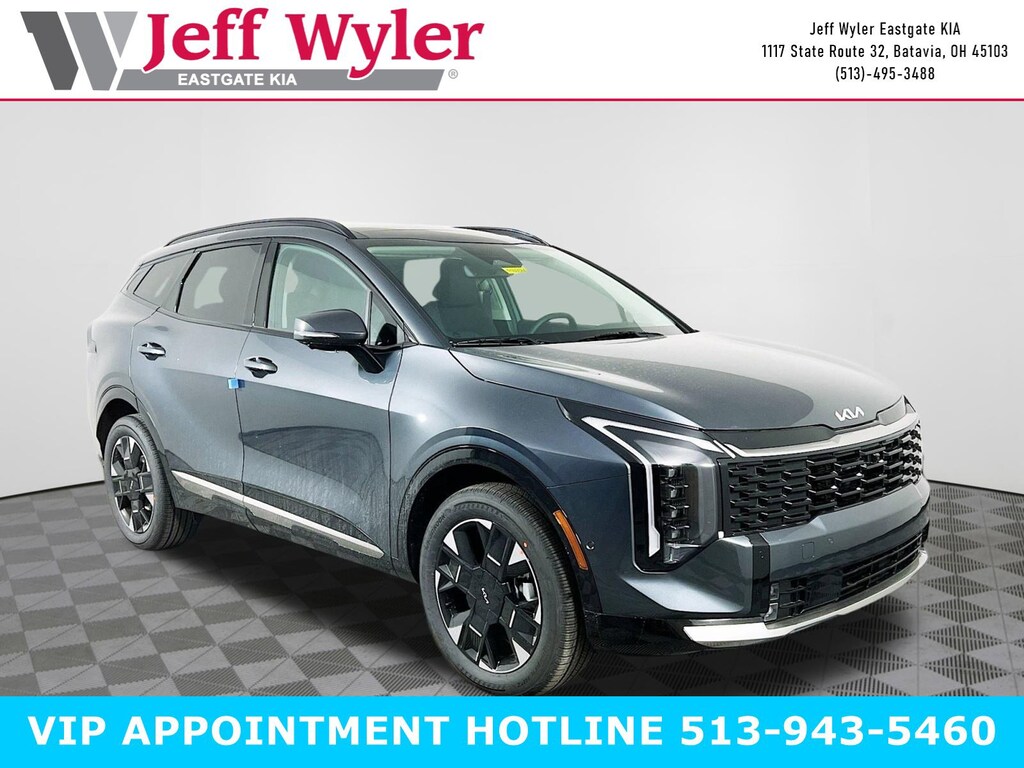 Gravity Gray 2026 Kia Sportage Hybrid SX-Prestige 1.6L Turbo GDI 4-Cylinder AWD 6-Speed Automatic 35/36 City/Highway MPG Jeff Wyler Eastgate Auto Mall is proud to offer this superb-looking 2026 Kia Sportage Hybrid SX-Prestige in Gravity Gray. Well equipped with: 4-Wheel Disc Brakes, 8 Speakers, ABS brakes, Air Conditioning, All Weather Floor Mats, Alloy wheels, AM/FM radio: SiriusXM, Auto High-beam Headlights, Auto-Dimming Mirror with HomeLink, Automatic temperature control, Brake assist, Bumpers: body-color, Carpeted Floor Mats, Compass, Delay-off headlights, Driver door bin, Driver vanity mirror, Dual front impact airbags, Dual front side impact airbags, Electronic Stability Control, Emergency communication system, Four wheel independent suspension, Front anti-roll bar, Front Bucket Seats, Front Center Armrest, Front dual zone A/C, Front fog lights, Front reading lights, Fully automatic headlights, harman/kardon® Speakers, Heated and Ventilated Front Bucket Seats, Heated door mirrors, Heated front seats, Heated steering wheel, Illuminated entry, Leather steering wheel, Low tire pressure warning, Memory seat, Navigation System, Occupant sensing airbag, Outside temperature display, Overhead airbag, Overhead console, Panic alarm, Passenger door bin, Passenger vanity mirror, Power door mirrors, Power driver seat, Power Liftgate, Power moonroof, Power passenger seat, Power steering, Power windows, Radio: AM/FM/HD Premium Audio System, Rain sensing wipers, Rear anti-roll bar, Rear reading lights, Rear seat center armrest, Rear side impact airbag, Rear window defroster, Rear window wiper, Remote keyless entry, Security system, Speed control, Speed-sensing steering, Split folding rear seat, Spoiler, Steering wheel mounted audio controls, Syntex Premium Leatherette Seat Trim, Tachometer, Telescoping steering wheel, Tilt steering wheel, Traction control, Trip computer, Turn signal indicator mirrors, Variably intermittent wipers, Ventilated front seats, and Wheels: 19" x 7.5J Alloy. 35/36 City/Highway MPG