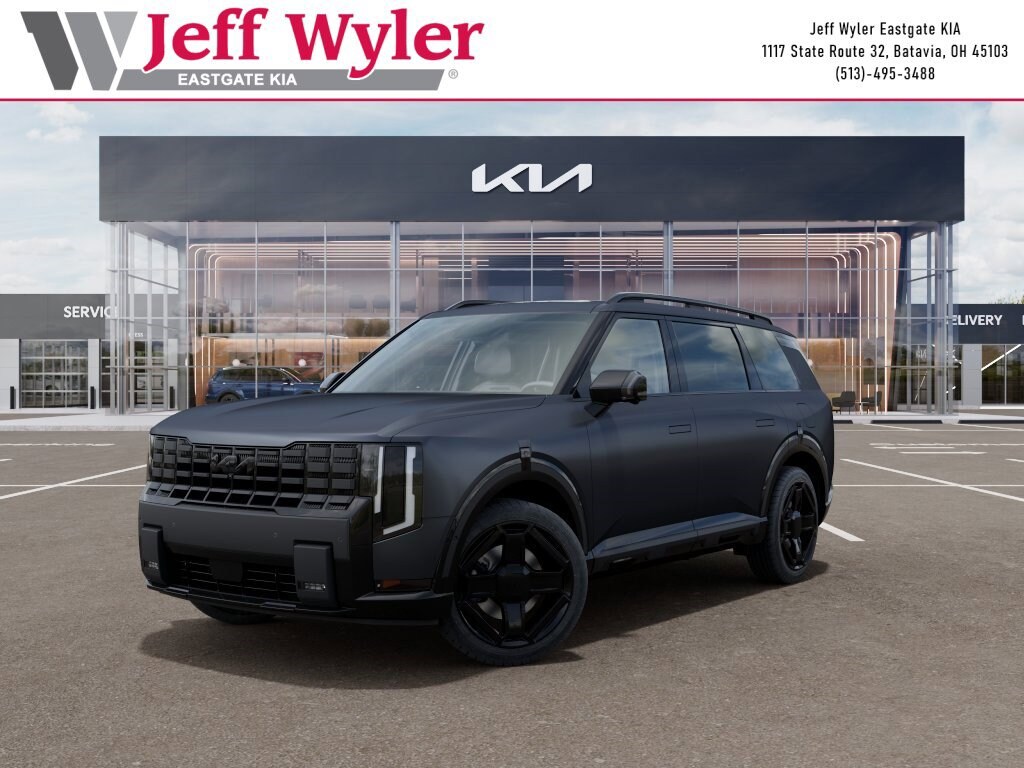 Panthera Metal Matte 2027 Kia Telluride X-Line SX-Prestige 2.5L 4-Cylinder AWD 6-Speed Automatic Jeff Wyler Eastgate Auto Mall is delighted to offer this good-looking 2027 Kia Telluride X-Line SX-Prestige in Panthera Metal Matte. Well equipped with: 10-Way Power Driver Seat with Thigh Support, 14 Speakers, 3rd row seats: split-bench, 4-Wheel Disc Brakes, ABS brakes, Air Conditioning, Alloy wheels, AM/FM radio: SiriusXM, Apple CarPlay & Android Auto, Audio memory, Auto High-beam Headlights, Auto-dimming door mirrors, Auto-dimming Rear-View mirror, Auto-leveling suspension, Automatic temperature control, Brake assist, Bumpers: body-color, Carpeted Floor Mats, Compass, Delay-off headlights, Driver door bin, Driver vanity mirror, Dual front impact airbags, Dual front side impact airbags, Electronic Stability Control, Emergency communication system: 911 Connect, Exterior Parking Camera Rear, Four wheel independent suspension, Front anti-roll bar, Front Bucket Seats, Front Center Armrest, Front dual zone A/C, Front fog lights, Front reading lights, Fully automatic headlights, Garage door transmitter: HomeLink, Heads-Up Display, Heated and Ventilated Front Bucket Seats, Heated door mirrors, Heated front seats, Heated rear seats, Heated steering wheel, HVAC memory, Illuminated entry, Knee airbag, Low tire pressure warning, Memory seat, Navigation System, Occupant sensing airbag, Outside temperature display, Overhead airbag, Overhead console, Panic alarm, Passenger door bin, Passenger vanity mirror, Power door mirrors, Power driver seat, Power Liftgate, Power moonroof, Power passenger seat, Power steering, Power windows, Radio data system, Radio: 14 Speaker Meridian Audio System, Rain sensing wipers, Rear air conditioning, Rear anti-roll bar, Rear reading lights, Rear side impact airbag, Rear window defroster, Rear window wiper, Reclining 3rd row seat, Remote keyless entry, Security system, Speed control, Speed-sensing steering, Split folding rear seat, Spoiler, Steering wheel memory, Steering wheel mounted audio controls, SynTex/SynTex Suede Seat Trim, Tachometer, Telescoping steering wheel, Tilt steering wheel, Traction control, Trip computer, Turn signal indicator mirrors, Variably intermittent wipers, Ventilated front seats, Ventilated rear seats, and Wheels: 21" x 8" Type An Aluminum Alloy.