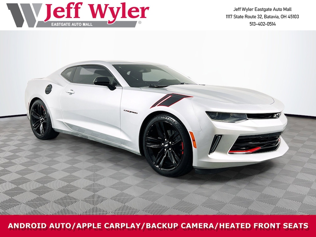 Jeff Wyler Eastgate Auto Mall is pleased to offer this attractive 2018 Chevrolet Camaro 2LT in Silver Ice Metallic. Well equipped with: Preferred Equipment Group 2LT, Redline Edition (Black Front & Rear Bowtie Emblems (LPO), Black Outside Mirror Caps, Camaro Emblem, Dark Finish Tail Lamps (LPO), Decklid Blackout Decal (LPO), Hash Mark Decal (LPO), Premium Carpeted Floor Mats w/Camaro Logo (LPO), and Wheels: 20" Black-Painted Aluminum w/Red Accents), RS Package (High-Intensity Discharge Headlamps and LED Taillamps), 18" Silver-Painted Aluminum Wheels, 2 USB Ports & Auxiliary Input Jack, 4-Wheel Disc Brakes, 6-Way Power Front Passenger Seat Adjuster, 8-Way Power Driver Seat Adjuster, 9 Speakers, ABS brakes, Air Conditioning, Alloy wheels, AM/FM radio: SiriusXM, Apple CarPlay/Android Auto, Auto-dimming Rear-View mirror, Automatic temperature control, Bose Premium 9-Speaker Audio System Feature, Brake assist, Bumpers: body-color, Compass, Decklid-Mounted Lip Spoiler, Delay-off headlights, Driver door bin, Driver vanity mirror, Dual front impact airbags, Dual front side impact airbags, Dual Mode Performance Exhaust, Electronic Stability Control, Emergency communication system: OnStar Guidance, Exterior Parking Camera Rear, Four wheel independent suspension, Front anti-roll bar, Front Bucket Seats, Front Center Armrest, Front dual zone A/C, Front fog lights, Front License Plate Bracket, Front reading lights, Front Sport Bucket Seats, Fully automatic headlights, Garage door transmitter, Heated Driver & Front Passenger Seats, Heated front seats, Illuminated entry, Knee airbag, Leather Shift Knob, Leather-Trimmed Seat Trim, Low tire pressure warning, Occupant sensing airbag, Outside temperature display, Overhead airbag, Panic alarm, Passenger door bin, Passenger vanity mirror, Power door mirrors, Power driver seat, Power passenger seat, Power steering, Power windows, Premium audio system: Chevrolet MyLink, Radio data system, Radio: Chevrolet MyLink Audio System, Rear anti-roll bar, Rear window defroster, Remote keyless entry, Security system, SiriusXM Satellite Radio, Speed control, Speed-sensing steering, Steering wheel mounted audio controls, Tachometer, Telescoping steering wheel, Tilt steering wheel, Tire Inflation Kit, Traction control, Trip computer, Upper & Lower Grille (LPO), Variably intermittent wipers, Ventilated Driver & Front Passenger Seats, Ventilated front seats, Voltmeter, and Wheels: 20" 5-Split Spoke Machined-Face Aluminum. CARFAX One-Owner. Clean CARFAX. Awards:  * Car and Driver 10 Best Cars   * JD Power Dependability Study   * 2018 KBB.com 10 Coolest Cars Under $25,000   * 2018 KBB.com 10 Best Used Sports Cars Under $30,000   * 2018 KBB.com 5-Year Cost to Own Awards   * 2018 KBB.com 10 Most Awarded BrandsCar and Driver, January 2017. Ask about available certifications. Used vehicles 10 years of age or newer with less than 100,000 miles are eligible for the Wyler Assurance Program, but eligible vehicles must pass our reconditioning process and multi-point inspection. Provided the vehicle passes inspection, vehicles will be eligible for the 6 month/6,000 mile limited warranty. The 6 month/6,000 mile limited warranty is NOT available on AS-IS vehicles, wholesale vehicles, lease buyback/pass-thru vehicles or un-inspected vehicles. Note that this program can also apply to vehicles where the remaining factory coverage is less than 6 months or 6,000 miles. Please check the Federal Trade Commission (FTC) Buyers guide on the vehicle for full details as to whether or not warranty coverage may apply. Contact Dealer for additional details. The Wyler Assurance 6 month/6,000 Mile limited warranty ends 6 months from the date of the Retail Purchase Agreement (BUYERS ORDER) or when the vehicle's odometer registers 6,000 additional miles to the mileage listed on the BUYERS ORDER, whichever comes first. Your Deductible - The warranty holder on your contract pays the first $100 of each covered repair.