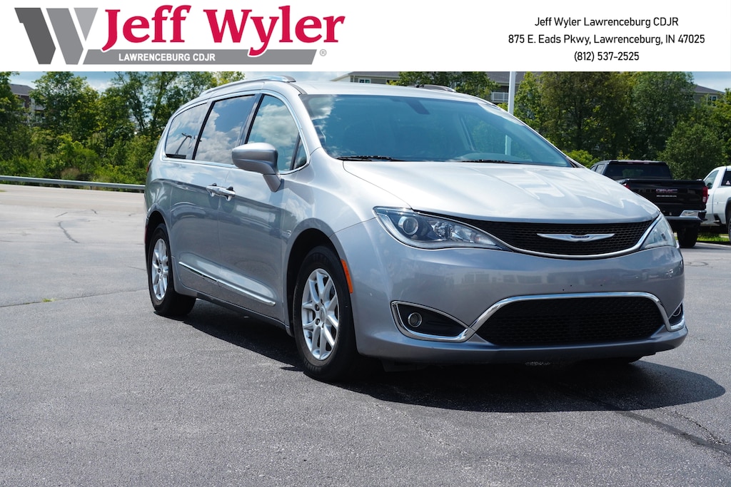 Jeff Wyler Chrysler Dodge Jeep of Lawrenceburg is pleased to offer this terrific-looking 2020 Chrysler Pacifica Touring L in Billet Silver Metallic Clearcoat. Quick Order Package 27L, 17" x 7.0" Aluminum Wheels, 3.25 Axle Ratio, 3rd row seats: split-bench, 4-Wheel Disc Brakes, 6 Speakers, ABS brakes, Air Conditioning, Alloy wheels, AM/FM radio: SiriusXM, Apple CarPlay, Apple CarPlay/Android Auto, Audio memory, Auto-dimming Rear-View mirror, Automatic temperature control, Black Seats, Blind Spot & Rear Cross Path Detection, Bodyside moldings, Brake assist, Bumpers: body-color, Compass, Delay-off headlights, Driver door bin, Driver vanity mirror, Driver's Seat Mounted Armrest, Dual front impact airbags, Dual front side impact airbags, Electronic Stability Control, Emergency communication system: Uconnect Access, Four wheel independent suspension, Front anti-roll bar, Front Bucket Seats, Front dual zone A/C, Front fog lights, Front reading lights, Fully automatic headlights, Garage door transmitter, Google Android Auto, GPS Antenna Input, Heated door mirrors, Heated front seats, Heated steering wheel, Illuminated entry, Integrated Voice Command w/Bluetooth, Knee airbag, Leather steering wheel, Low tire pressure warning, Manufacturer's Statement of Origin, Memory seat, Occupant sensing airbag, Outside temperature display, Overhead airbag, Overhead console, Panic alarm, ParkView Rear Back-Up Camera, Passenger door bin, Passenger seat mounted armrest, Passenger vanity mirror, Perforated Leather Trim Bucket Seats, Power door mirrors, Power driver seat, Power Liftgate, Power steering, Power windows, Radio data system, Radio: Uconnect 4 w/7" Display, Rear air conditioning, Rear reading lights, Rear window defroster, Rear window wiper, Reclining 3rd row seat, Remote keyless entry, Roof rack, Security system, SiriusXM Satellite Radio, Speed control, Split folding rear seat, Spoiler, Steering wheel mounted audio controls, Tachometer, Telescoping steering wheel, Tilt steering wheel, Touring Suspension, Traction control, Trip computer, USB Host Flip, Variably intermittent wipers, and Voltmeter Our PRE-OWNED vehicles are put through a rigorous 167- POINT QUALITY ASSURANCE INSPECTION along with an average amount of over $1,400.00 SPENT to recondition each vehicle so we can be sure to deliver you the highest quality vehicle like you deserve! ***ONLINE PRICE DOES NOT INCLUDE WYLER FAMILY FIRST PACKAGE*** Stop by 4136 Shelbyville Road to see for yourself, or give us a call @ 502-897-3151 to schedule your test drive! Ask about available certifications.