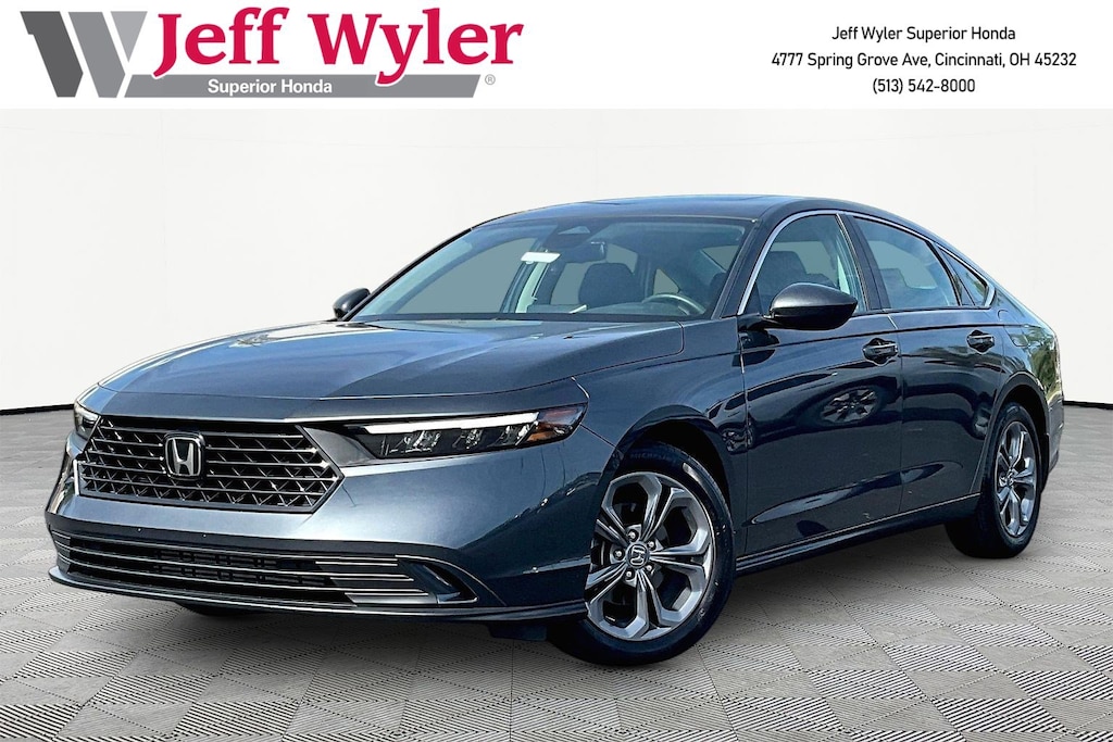 Jeff Wyler Superior Honda is proud to offer this gorgeous 2024 Honda Accord EX in Meteorite Gray Metallic. BLUETOOTH, MOONROOF SUNROOF, CLEAN CARFAX...NO ACCIDENTS, HONDA CERTIFIED!, REMAINDER OF FACTORY WARRANTY, RECENT SUPERIOR TRADE, BOUGHT, SERVICED AND TRADED AT SUPERIOR, and ONE OWNER Accord EX, HondaTrue Certified Certified, 4D Sedan, 1.5T I4 DOHC 16V Turbocharged VTEC, CVT, FWD, Meteorite Gray Metallic, Black Cloth, 4-Wheel Disc Brakes, 8 Speakers, ABS brakes, Adaptive Cruise Control: Adaptive Cruise Control (ACC) with Low-Speed Follow, Air Conditioning, Alloy wheels, AM/FM radio, Apple CarPlay/Android Auto, Auto High-beam Headlights, Auto-dimming Rear-View mirror, Automatic temperature control, Blind Spot Information (BSI) System warning, Brake assist, Bumpers: body-color, Compass, Delay-off headlights, Driver door bin, Driver vanity mirror, Dual front impact airbags, Dual front side impact airbags, Electronic Stability Control, Emergency communication system: HondaLink Assist, Exterior Parking Cameras, Fabric Seat Trim, Four wheel independent suspension, Front anti-roll bar, Front Bucket Seats, Front Center Armrest, Front dual zone A/C, Front reading lights, Fully automatic headlights, Heated Front Bucket Seats, Heated front seats, Illuminated entry, Knee airbag, Lane departure: Lane Keeping Assist System (LKAS) active, Low tire pressure warning, Occupant sensing airbag, Outside temperature display, Overhead airbag, Overhead console, Panic alarm, Passenger door bin, Passenger vanity mirror, Power door mirrors, Power driver seat, Power moonroof, Power steering, Power windows, Radio data system, Radio: 180-Watt AM/FM Audio System, Rear anti-roll bar, Rear reading lights, Rear seat center armrest, Rear side impact airbag, Rear window defroster, Remote keyless entry, Security system, Speed control, Speed-sensing steering, Speed-Sensitive Wipers, Split folding rear seat, Steering wheel mounted audio controls, Tachometer, Telescoping steering wheel, Tilt steering wheel, Traction control, Trip computer, Variably intermittent wipers, and Wheels: 17" x 7.5" Pewter Gray Our PRE-OWNED vehicles are put through a rigorous 167- POINT QUALITY ASSURANCE INSPECTION along with an average amount of over $1,400.00 SPENT to recondition each vehicle so we can be sure to deliver you the highest quality vehicle like you deserve! ***ONLINE PRICE DOES NOT INCLUDE WYLER FAMILY FIRST PACKAGE*** Stop by 4777 Spring Grove Ave. Road to see for yourself, or give us a call @ 283-209-1858 to schedule your test drive!Vehicle pricing includes all offers and incentives. Due to limited inventory, offers and pricing are all subject to change. Tax, Title, Tags and $387 doc fees are not included in vehicle price shown and must be paid by the purchaser. Doc fees vary by location. Financing w/approved credit. Mileage est. Based on current EPA estimates reflecting new EPA methods beginning w/ 2008 models. For comparison only. Do not compare to pre 2008 models. Actual mileage may vary based on how you drive and maintain your vehicle. Information on this site includes 3rd party data believed to be reliable, subject to change without notice. Jeff Wyler reserves the right to correct any errors and/or omissions in the compilation or presentation of this data and makes no representations express or implied to any prospective purchaser as to the vehicle's condition, specifications, history, equipment or equipment function, price or warranties. This vehicle may be subject to an open recall that has not been repaired. Please consult safercar.gov for more information on the current status. It is the responsibility of purchaser to confirm any data prior to purchase. Other than MSRP, all offers only apply to this vehicle and are subject to change. Vehicle prices are subject to change and all vehicles are subject to prior sale and may not be available when you are ready to purchase. Prices listed on any other website may not be accepted. Dealership advertises the sale of
