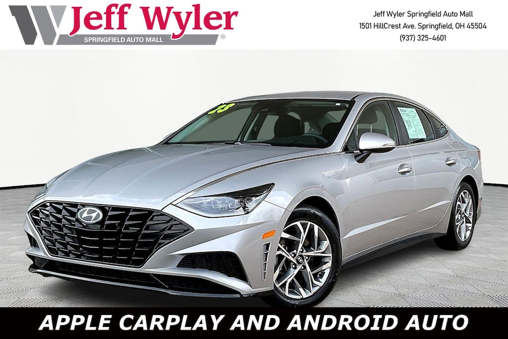 Jeff Wyler Springfield Auto Mall is delighted to offer this gorgeous-looking 2023 Hyundai Sonata SEL in Curated Silver. Well equipped with: Option Group 01, 17" x 7.0J Aluminum Alloy Wheels, 4-Wheel Disc Brakes, 6 Speakers, ABS brakes, Air Conditioning, Alloy wheels, AM/FM radio: SiriusXM, Apple CarPlay & Android Auto, Auto High-beam Headlights, Automatic temperature control, Brake assist, Bumpers: body-color, Cargo Tray, Carpeted Floor Mats, Delay-off headlights, Driver door bin, Driver vanity mirror, Dual front impact airbags, Dual front side impact airbags, Electronic Stability Control, Emergency communication system: Blue Link Connected Car Service (3-year complimentary subscription), Exterior Parking Camera Rear, Four wheel independent suspension, Front anti-roll bar, Front Bucket Seats, Front Center Armrest, Front dual zone A/C, Front reading lights, Fully automatic headlights, Heated door mirrors, Heated Front Bucket Seats, Heated front seats, Illuminated entry, Knee airbag, Low tire pressure warning, Mud Guards, Navigation System, Occupant sensing airbag, Outside temperature display, Overhead airbag, Overhead console, Panic alarm, Passenger door bin, Passenger vanity mirror, Power door mirrors, Power driver seat, Power steering, Power windows, Premium Cloth Seating Surfaces, Radio data system, Radio: AM/FM/MP3/HD/SiriusXM Display Audio w/Nav, Rear anti-roll bar, Rear seat center armrest, Rear side impact airbag, Rear window defroster, Remote keyless entry, Security system, Speed control, Speed-sensing steering, Speed-Sensitive Wipers, Split folding rear seat, Steering wheel mounted audio controls, Tachometer, Telescoping steering wheel, Tilt steering wheel, Traction control, Trip computer, Trunk Cargo Net, Turn signal indicator mirrors, and Variably intermittent wipers. Ask about available certifications. Used vehicles 10 years of age or newer with less than 100,000 miles are eligible for the Wyler Assurance Program, but eligible vehicles must pass our reconditioning process and multi-point inspection. Provided the vehicle passes inspection, vehicles will be eligible for the 6 month/6,000 mile limited warranty. The 6 month/6,000 mile limited warranty is NOT available on AS-IS vehicles, wholesale vehicles, lease buyback/pass-thru vehicles or un-inspected vehicles. Note that this program can also apply to vehicles where the remaining factory coverage is less than 6 months or 6,000 miles. Please check the Federal Trade Commission (FTC) Buyers guide on the vehicle for full details as to whether or not warranty coverage may apply. Contact Dealer for additional details. The Wyler Assurance 6 month/6,000 Mile limited warranty ends 6 months from the date of the Retail Purchase Agreement (BUYERS ORDER) or when the vehicle's odometer registers 6,000 additional miles to the mileage listed on the BUYERS ORDER, whichever comes first. Your Deductible - The warranty holder on your contract pays the first $100 of each covered repair.