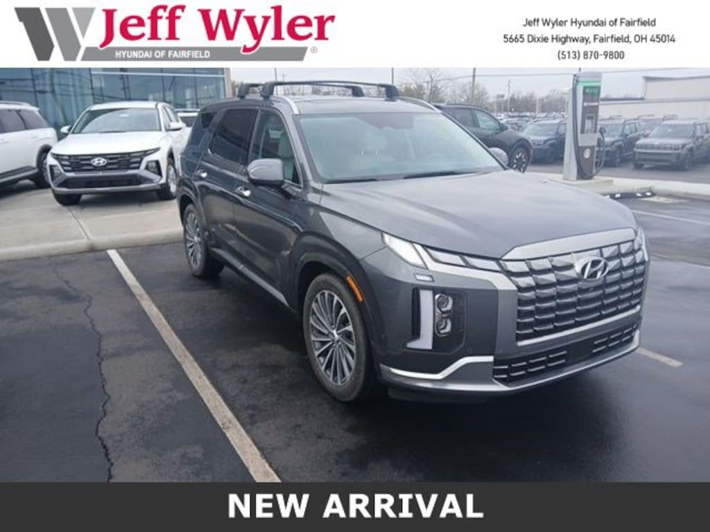 Jeff Wyler Hyundai of Fairfield is proud to offer this charming 2024 Hyundai Palisade Calligraphy in Steel Graphite. Well equipped with: Option Group 01, Android Auto, Apple CarPlay, CALL NOW FOR YOUR VIP APPOINTMENT 513-870-9800, FULLY SERVICED w/RECORDS, GUARANTEED FINANCING!! NO MATTER YOUR SITUATION WE CAN GET AN APPROVAL!!, THE #1 Volume dealer in the region! Come see why for yourself Today!!, WE PAY MORE FOR YOUR TRADE!!, 12 Speakers, 3.648 Axle Ratio, 3rd row seats: split-bench, 4-Wheel Disc Brakes, ABS brakes, Air Conditioning, Alloy wheels, AM/FM radio: SiriusXM, Apple CarPlay & Android Auto, Auto High-beam Headlights, Auto-dimming door mirrors, Auto-dimming Rear-View mirror, Auto-leveling suspension, Automatic temperature control, Brake assist, Bumpers: body-color, Cargo Net, Carpeted Floor Mats, Compass, Delay-off headlights, Driver door bin, Driver vanity mirror, Dual front impact airbags, Dual front side impact airbags, Electronic Stability Control, Emergency communication system, Exterior Parking Camera Rear, First Aid Kit, Four wheel independent suspension, Front anti-roll bar, Front Bucket Seats, Front Center Armrest, Front dual zone A/C, Front reading lights, Fully automatic headlights, Garage door transmitter: HomeLink, harman/kardon® Speakers, Heads-Up Display, Heated & Ventilated Front Bucket Seats, Heated door mirrors, Heated front seats, Heated rear seats, Heated steering wheel, Illuminated entry, Knee airbag, Low tire pressure warning, Memory seat, Mudguards, Navigation System, Occupant sensing airbag, Outside temperature display, Overhead airbag, Overhead console, Panic alarm, Passenger door bin, Passenger vanity mirror, Power door mirrors, Power driver seat, Power Liftgate, Power moonroof, Power passenger seat, Power steering, Power windows, Premium Nappa Leather Seat Trim, Radio data system, Radio: AM/FM/MP3 Premium Audio System, Rain sensing wipers, Rear air conditioning, Rear anti-roll bar, Rear audio controls, Rear reading lights, Rear side impact airbag, Rear window defroster, Rear window wiper, Reclining 3rd row seat, Remote keyless entry, Security system, Speed control, Speed-sensing steering, Split folding rear seat, Spoiler, Steering wheel mounted audio controls, Tachometer, Telescoping steering wheel, Tilt steering wheel, Traction control, Trip computer, Turn signal indicator mirrors, Variably intermittent wipers, Ventilated front seats, Ventilated rear seats, Wheel Locks, and Wheels: 20" x 7.5J Calligraphy Exclusive Alloy. TO CHECK ON THE AVAILABILITY OF THIS VEHICLE REACH OUT TO ONE OF OUR TEAM MEMBERS!! ALSO SHOP ONLINE AT https://www.jeffwylerhyundaioffairfield.com/ Proudly Serving: Cincinnati, Dayton, Columbus, Louisville, Lexington, Indianapolis, Hamilton, Florence, Alexandria, Beavercreek, Springdale, West Chester, Monroe, Fairfield, Kenwood, Newport and all of greater Cincinnati Ohio, Indiana, and Northern Kentucky.