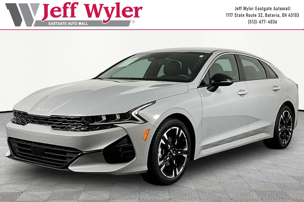 Jeff Wyler Eastgate Auto Mall is very proud to offer this great-looking 2023 Kia K5 GT-Line in Wolf Gray. Well equipped with: GT-Line Premium Package (Forward Collision Avoidance-Assist, Highway Driving Assist, LED Projection Headlamps, and Smart Cruise Control w/Stop & Go), 4-Wheel Disc Brakes, 6 Speakers, ABS brakes, Air Conditioning, Alloy wheels, AM/FM radio: SiriusXM, Apple CarPlay & Android Auto, Auto High-beam Headlights, Automatic temperature control, Brake assist, Bumpers: body-color, Carpeted Floor Mats, Cloth/SynTex Seat Trim, Delay-off headlights, Driver door bin, Driver vanity mirror, Dual front impact airbags, Dual front side impact airbags, Electronic Stability Control, Four wheel independent suspension, Front anti-roll bar, Front Bucket Seats, Front Center Armrest, Front dual zone A/C, Front fog lights, Front reading lights, Fully automatic headlights, Heated door mirrors, Illuminated entry, Knee airbag, Low tire pressure warning, Navigation System, Occupant sensing airbag, Outside temperature display, Overhead airbag, Overhead console, Panic alarm, Passenger door bin, Passenger vanity mirror, Power door mirrors, Power driver seat, Power steering, Power windows, Radio data system, Radio: AM/FM/MP3 Audio System, Rear anti-roll bar, Rear seat center armrest, Rear side impact airbag, Rear window defroster, Remote keyless entry, Security system, Speed control, Speed-sensing steering, Split folding rear seat, Spoiler, Sport steering wheel, Steering wheel mounted audio controls, Tachometer, Telescoping steering wheel, Tilt steering wheel, Traction control, Trip computer, Turn signal indicator mirrors, Variably intermittent wipers, and Wheels: 18" Gloss Black Machined Finish Alloy. CARFAX One-Owner. Ask about available certifications. Used vehicles 10 years of age or newer with less than 100,000 miles are eligible for the Wyler Assurance Program, but eligible vehicles must pass our reconditioning process and multi-point inspection. Provided the vehicle passes inspection, vehicles will be eligible for the 6 month/6,000 mile limited warranty. The 6 month/6,000 mile limited warranty is NOT available on AS-IS vehicles, wholesale vehicles, lease buyback/pass-thru vehicles or un-inspected vehicles. Note that this program can also apply to vehicles where the remaining factory coverage is less than 6 months or 6,000 miles. Please check the Federal Trade Commission (FTC) Buyers guide on the vehicle for full details as to whether or not warranty coverage may apply. Contact Dealer for additional details. The Wyler Assurance 6 month/6,000 Mile limited warranty ends 6 months from the date of the Retail Purchase Agreement (BUYERS ORDER) or when the vehicle's odometer registers 6,000 additional miles to the mileage listed on the BUYERS ORDER, whichever comes first. Your Deductible - The warranty holder on your contract pays the first $100 of each covered repair.