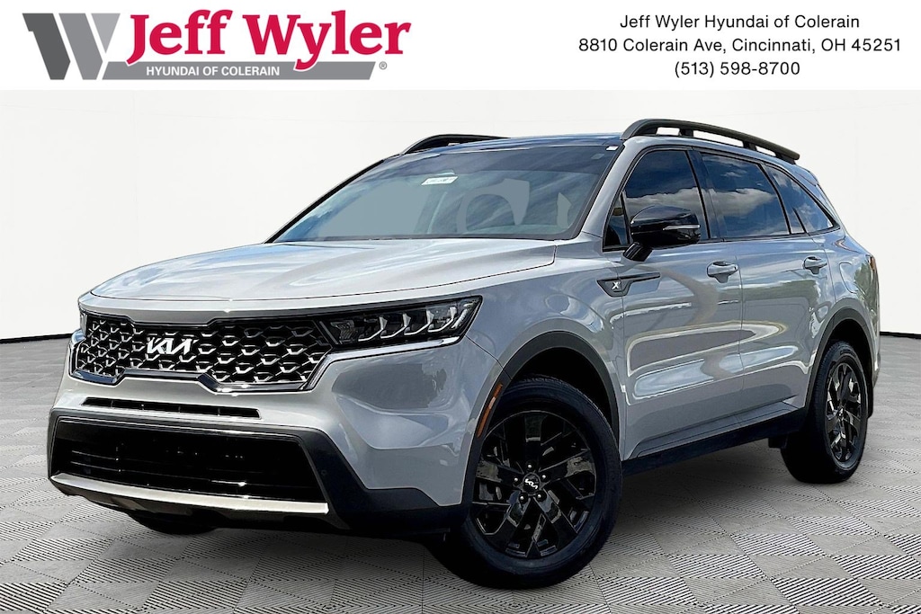 Jeff Wyler Hyundai of Colerain is excited to offer this beautiful-looking 2023 Kia Sorento X-Line S in Wolf Gray. Well equipped with: Panoramic Sunroof Package (LED Interior Lighting and Panoramic Power Sunroof w/Power Sunshade), AWD, 3rd row seats: split-bench, 4-Wheel Disc Brakes, 4.081 Axle Ratio, 6 Speakers, ABS brakes, Air Conditioning, Alloy wheels, AM/FM radio: SiriusXM, Apple CarPlay & Android Auto, Auto High-beam Headlights, Automatic temperature control, Brake assist, Bumpers: body-color, Carpet Floor Mats, Delay-off headlights, Driver door bin, Driver vanity mirror, Dual front impact airbags, Dual front side impact airbags, Electronic Stability Control, Emergency communication system, Exterior Parking Camera Rear, Four wheel independent suspension, Front anti-roll bar, Front Bucket Seats, Front Center Armrest, Front dual zone A/C, Front reading lights, Fully automatic headlights, Heated door mirrors, Heated Front Bucket Seats, Heated front seats, Illuminated entry, Knee airbag, Leather Shift Knob, Leather steering wheel, Low tire pressure warning, Mudguards, Navigation System, Occupant sensing airbag, Outside temperature display, Overhead airbag, Overhead console, Panic alarm, Passenger door bin, Passenger vanity mirror, Power door mirrors, Power driver seat, Power steering, Power windows, Radio data system, Radio: AM/FM Audio System, Rear air conditioning, Rear anti-roll bar, Rear reading lights, Rear seat center armrest, Rear window defroster, Rear window wiper, Remote keyless entry, Roof rack: rails only, Security system, Smart Key w/ Push Button and Remote Start, Speed control, Speed-sensing steering, Split folding rear seat, Spoiler, Steering wheel mounted audio controls, SynTex Artificial Leather Seat Trim, Tachometer, Telescoping steering wheel, Tilt steering wheel, Traction control, Trip computer, Turn signal indicator mirrors, Variably intermittent wipers, and Wheels: 7.5J x 18" Gloss Black Alloy. Clean CARFAX. This sales price excludes tax, title, and dealer fees. While every reasonable effort is made to ensure the accuracy of this information, we are not responsible for any errors or omissions contained on these pages. Used vehicles 10 years of age or newer with less than 100,000 miles are eligible for the Wyler Assurance Program, but eligible vehicles must pass our reconditioning process and multi-point inspection. Provided the vehicle passes inspection, vehicles will be eligible for the 6 month/6,000 mile limited warranty. The 6 month/6,000 mile limited warranty is NOT available on AS-IS vehicles, wholesale vehicles, lease buyback/pass-thru vehicles or un-inspected vehicles. Note that this program can also apply to vehicles where the remaining factory coverage is less than 6 months or 6,000 miles. Please check the Federal Trade Commission (FTC) Buyers guide on the vehicle for full details as to whether or not warranty coverage may apply. Contact Dealer for additional details. The Wyler Assurance 6 month/6,000 Mile limited warranty ends 6 months from the date of the Retail Purchase Agreement (BUYERS ORDER) or when the vehicle's odometer registers 6,000 additional miles to the mileage listed on the BUYERS ORDER, whichever comes first.Your Deductible - The warranty holder on your contract pays the first $100 of each covered repair.