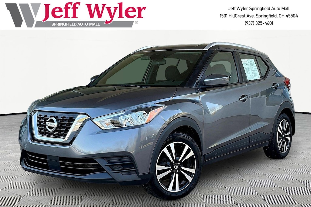 Jeff Wyler Springfield Auto Mall is pumped up to offer this superb-looking 2020 Nissan Kicks SV in Gun Metallic. Well equipped with: 17" Alloy Wheels, 3.927 Axle Ratio, 6 Speakers, ABS brakes, Air Conditioning, Alloy wheels, AM/FM radio: SiriusXM, Auto High-beam Headlights, Automatic temperature control, Blind Spot Warning, Brake assist, Bumpers: body-color, Carpeted Floor Mats w/Cargo Mat, Center Armrest w/Storage, Cloth Seat Trim, Compass, Driver door bin, Driver vanity mirror, Driver's Seat Mounted Armrest, Dual front impact airbags, Dual front side impact airbags, Electronic Stability Control, Front anti-roll bar, Front Bucket Seats, Front reading lights, Front wheel independent suspension, Fully automatic headlights, Heated door mirrors, Illuminated entry, Knee airbag, Low tire pressure warning, NissanConnect featuring Apple CarPlay and Android Auto, Occupant sensing airbag, Outside temperature display, Overhead airbag, Panic alarm, Passenger door bin, Passenger vanity mirror, Power door mirrors, Power steering, Power windows, Radio data system, Radio: AM/FM Audio System, Rear Parking Sensors, Rear reading lights, Rear side impact airbag, Rear window defroster, Rear window wiper, Remote keyless entry, Roof rack: rails only, Speed control, Splash Guards Grain (4 Piece), Split folding rear seat, Sport steering wheel, Steering wheel mounted audio controls, Tachometer, Telescoping steering wheel, Tilt steering wheel, Traction control, Trip computer, and Variably intermittent wipers. Awards: * 2020 KBB.com 10 Coolest New Cars Under $20,000 Ask about available certifications. Used vehicles 10 years of age or newer with less than 100,000 miles are eligible for the Wyler Assurance Program, but eligible vehicles must pass our reconditioning process and multi-point inspection. Provided the vehicle passes inspection, vehicles will be eligible for the 6 month/6,000 mile limited warranty. The 6 month/6,000 mile limited warranty is NOT available on AS-IS vehicles, wholesale vehicles, lease buyback/pass-thru vehicles or un-inspected vehicles. Note that this program can also apply to vehicles where the remaining factory coverage is less than 6 months or 6,000 miles. Please check the Federal Trade Commission (FTC) Buyers guide on the vehicle for full details as to whether or not warranty coverage may apply. Contact Dealer for additional details. The Wyler Assurance 6 month/6,000 Mile limited warranty ends 6 months from the date of the Retail Purchase Agreement (BUYERS ORDER) or when the vehicle's odometer registers 6,000 additional miles to the mileage listed on the BUYERS ORDER, whichever comes first. Your Deductible - The warranty holder on your contract pays the first $100 of each covered repair.