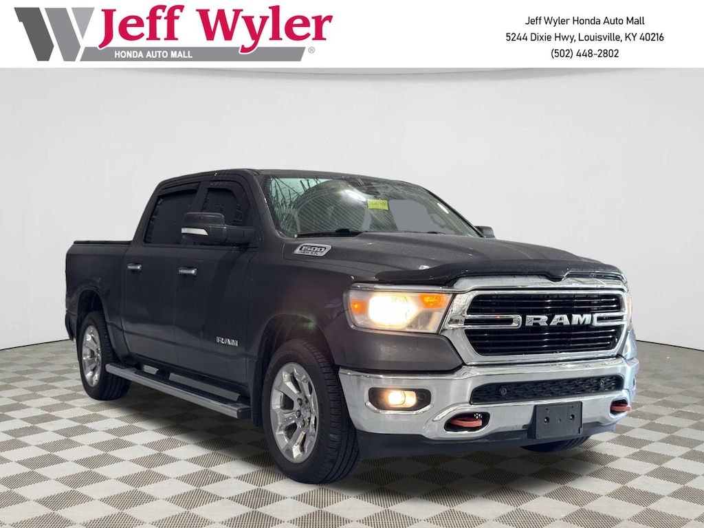4WD/AWD, Bluetooth, Dual climate Control, Push Button Start, Backup Camera, 115V Auxiliary Power Outlet, 115V Auxiliary Rear Power Outlet, 2 USB Full Function/Charge Only Media Hub, 3 Rear Seat Head Restraints, 3.21 Rear Axle Ratio, 4 Way Front Headrests, 4-Wheel Disc Brakes, 400W Inverter, 48V Belt Starter Generator, 6 Speakers, 8.4" Touchscreen Display, ABS brakes, Air Conditioning, Air Conditioning ATC w/Dual Zone Control, Alloy wheels, AM/FM radio, Anti-Spin Differential Rear Axle, Auto-Dimming Rear-View Mirror, Big Horn IP Badge, Big Horn Level 2 Equipment Group, Brake assist, Bumpers: chrome, Class IV Receiver Hitch, Cloth Bench Seat, Cluster 7.0" TFT Color Display, Compass, Dampened Tailgate, Delay-off headlights, Driver door bin, Dual front impact airbags, Dual front side impact airbags, Electronic Stability Control, Foam Bottle Insert (Door Trim Panel), Front anti-roll bar, Front Center Armrest w/Storage, Front fog lights, Front reading lights, Front Seat Back Map Pockets, Front wheel independent suspension, Fully automatic headlights, Glove Box Lamp, GPS Antenna Input, Heated door mirrors, Heated Front Seats, Heated Steering Wheel, Illuminated entry, Integrated Center Stack Radio, Leather steering wheel, Low tire pressure warning, Occupant sensing airbag, Outside temperature display, Overhead airbag, Overhead console, Panic alarm, ParkSense Front/Rear Park Assist w/Stop, ParkView Rear Back-Up Camera, Passenger door bin, Passenger vanity mirror, Power 4-Way Driver Lumbar Adjust, Power 8-Way Driver Seat, Power Adjustable Pedals, Power door mirrors, Power Heated Fold Away Mirrors, Power steering, Power windows, Quick Order Package 25Z Big Horn/Lone Star, Radio data system, Radio: Uconnect 3 w/5" Display, Radio: Uconnect 4 w/8.4" Display, Rear 60/40 Folding Seat, Rear anti-roll bar, Rear Dome w/On/Off Switch Lamp, Rear Power Sliding Window, Rear seat center armrest, Rear step bumper, Rear Wheelhouse Liners, Rear Window Defroster, Remote keyless entry, Remote Start System, Security Alarm, Single Disc Remote CD Player, SiriusXM Satellite Radio, Speed control, Split folding rear seat, Steering Wheel Mounted Audio Controls, Sun Visors w/Illuminated Vanity Mirrors, Tachometer, Telescoping steering wheel, Tilt steering wheel, Traction control, Trip computer, Universal Garage Door Opener, Variably intermittent wipers, Voltmeter, Wheel to Wheel Side Steps, Wheels: 18" x 8", Wheels: 20" x 9" Aluminum Chrome Clad. CARFAX One-Owner. 4WD 8-Speed Automatic HEMI 5.7L V8 Multi Displacement VVTRecent Arrival!15/21 City/Highway MPGAwards:  * Motor Trend Automobiles of the year   * 2019 KBB.com Best Auto Tech Awards   * NACTOY 2019 North American Truck of the Year   * 2019 KBB.com 10 Best Road Trip Cars   * 2019 KBB.com 10 Favorite New-for-2019 CarsAsk about available certifications.
