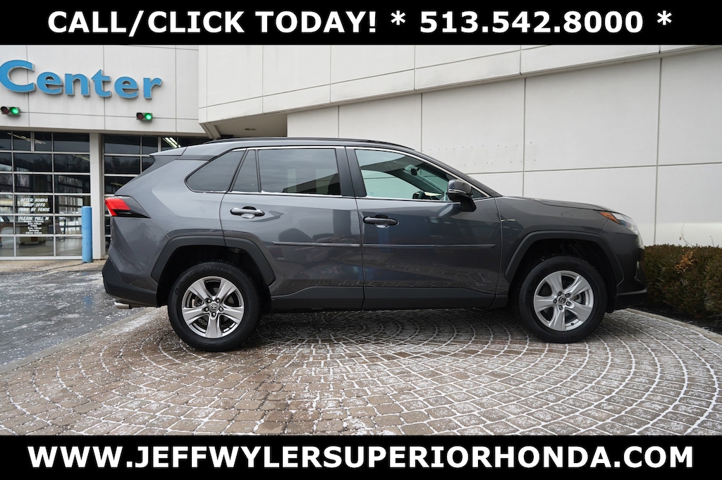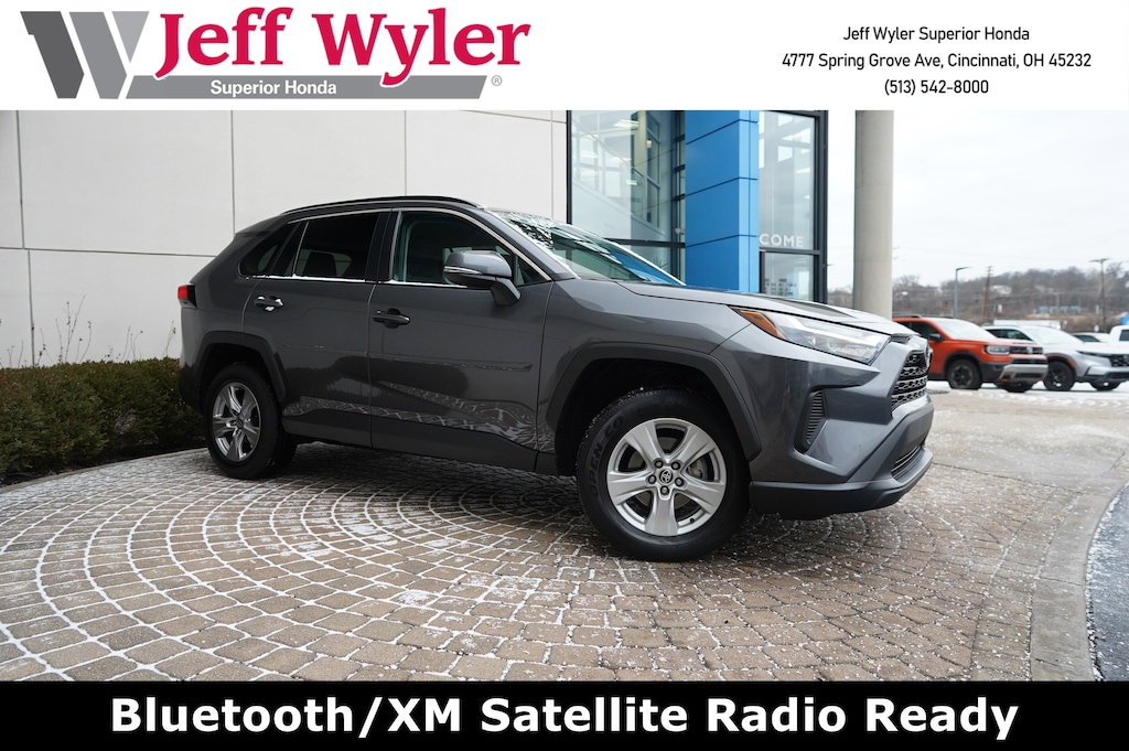Jeff Wyler Superior Honda is delighted to offer this superb 2023 Toyota RAV4 XLE in Magnetic Gray Metallic. BLUETOOTH, LEATHER, and MOONROOF SUNROOF RAV4 XLE, 4D Sport Utility, 2.5L 4-Cylinder DOHC Dual VVT-i, 8-Speed Automatic, AWD, Magnetic Gray Metallic, Black Cloth, 4-Wheel Disc Brakes, 6 Speakers, ABS brakes, Air Conditioning, Alloy wheels, AM/FM radio: SiriusXM, Auto High-beam Headlights, Automatic temperature control, Axle Ratio: 3.177, Brake assist, Bumpers: body-color, Delay-off headlights, Driver door bin, Driver vanity mirror, Dual front impact airbags, Dual front side impact airbags, Electronic Stability Control, Emergency communication system: Safety Connect (10-year trial), Exterior Parking Cameras, Fabric Seat Trim, Four wheel independent suspension, Front anti-roll bar, Front Bucket Seats, Front Center Armrest, Front dual zone A/C, Front reading lights, Fully automatic headlights, Heated door mirrors, Illuminated entry, Knee airbag, Low tire pressure warning, Occupant sensing airbag, Outside temperature display, Overhead airbag, Overhead console, Panic alarm, Passenger door bin, Passenger vanity mirror, Power door mirrors, Power driver seat, Power steering, Power windows, Radio data system, Radio: AM/FM/XM Audio System, Rear anti-roll bar, Rear seat center armrest, Rear window defroster, Rear window wiper, Remote keyless entry, Speed control, Speed-sensing steering, Split folding rear seat, Spoiler, Steering wheel mounted audio controls, Tachometer, Telescoping steering wheel, Tilt steering wheel, Traction control, Trip computer, Turn signal indicator mirrors, Variably intermittent wipers, and Wheels: 17" 5-Spoke Silver Alloy Our PRE-OWNED vehicles are put through a rigorous 167- POINT QUALITY ASSURANCE INSPECTION along with an average amount of over $1,400.00 SPENT to recondition each vehicle so we can be sure to deliver you the highest quality vehicle like you deserve! ***ONLINE PRICE DOES NOT INCLUDE WYLER FAMILY FIRST PACKAGE*** Stop by 4777 Spring Grove Ave. Road to see for yourself, or give us a call @ 283-209-1858 to schedule your test drive!